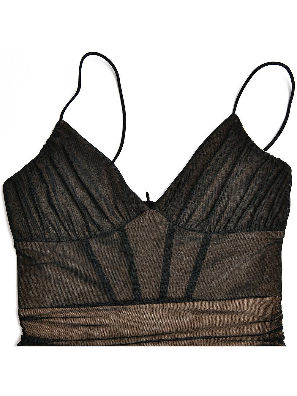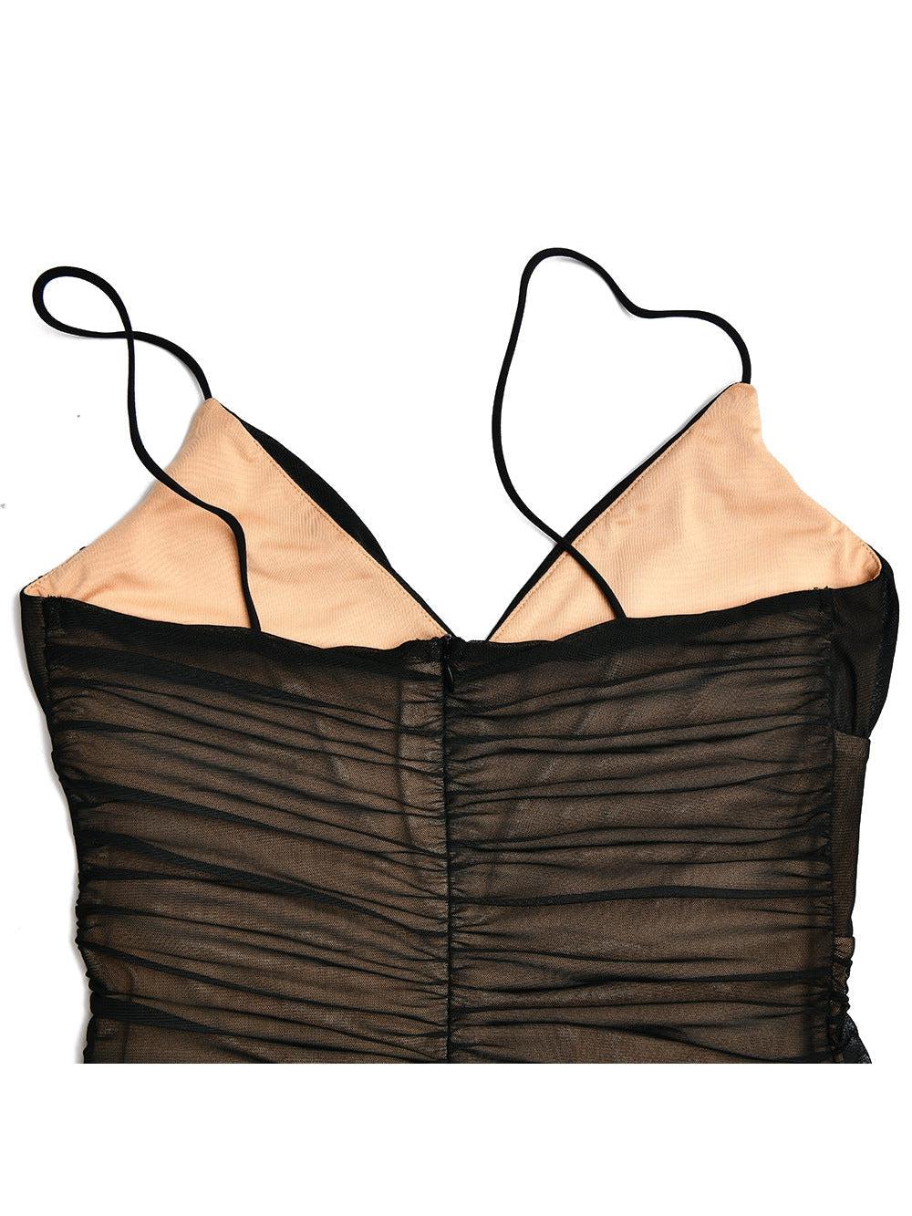 Mesh Tulle Spaghetti Strap Slit Maxi Dress