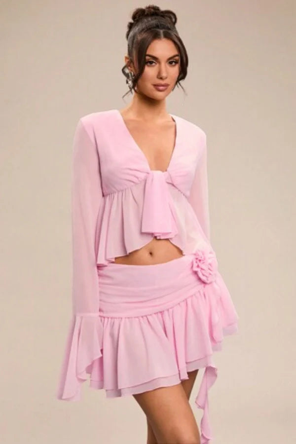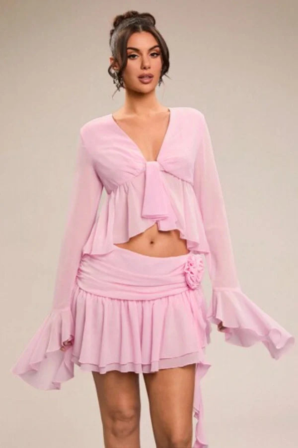 The Blush Bloom top is the ultimate summer vacation essential, blending sweetness and style effortlessly. Crafted in a soft pink hue, this long-sleeved top features delicate ruffle details that exude feminine charm. Its lightweight and breezy design make it perfect for warm days, while the versatile style allows you to pair it with skirts, shorts, or jeans for any occasion. Add a touch of elegance to your summer wardrobe with the Blush Bloom top.
