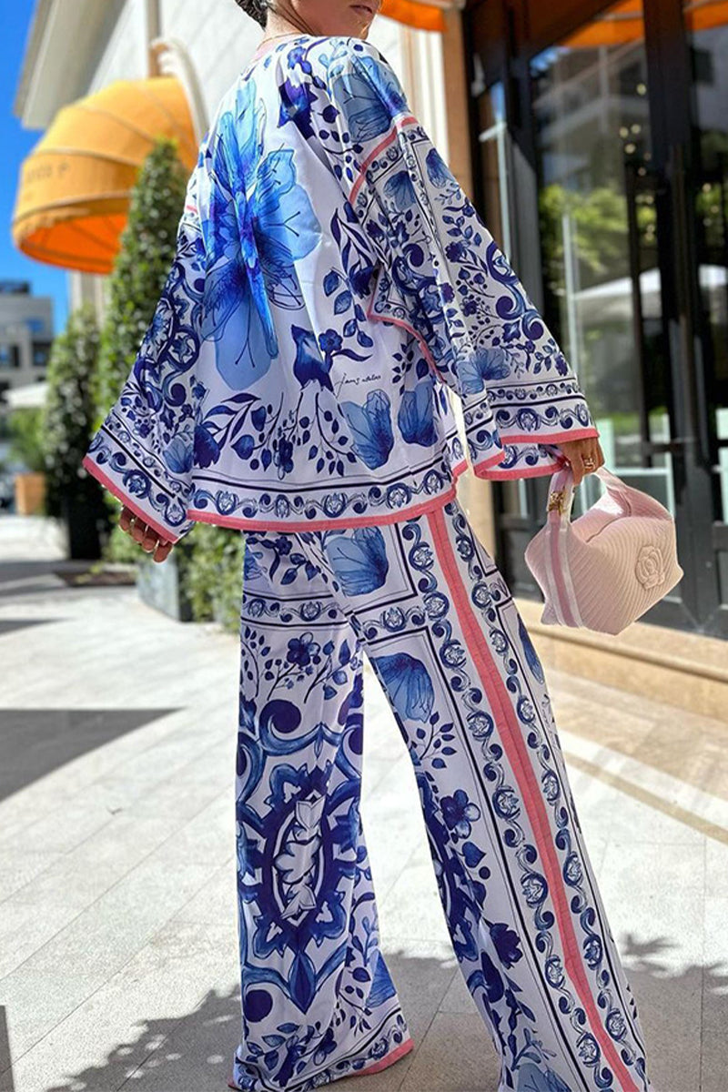 Bohemian College Floral Patchwork O Neck Long Sleeve Two Pieces