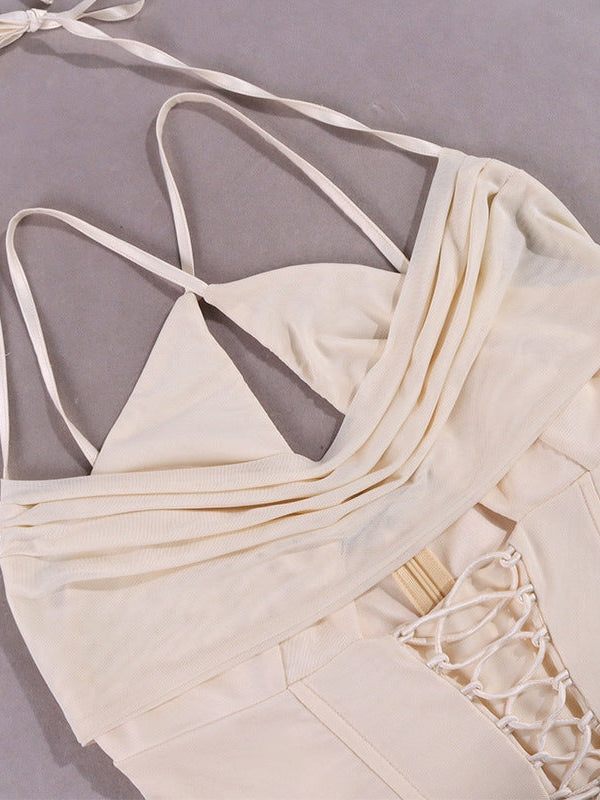 Element:Tie, Lace/Tulle/Fishnet, Cutout, Ruched, Lace up, Backless