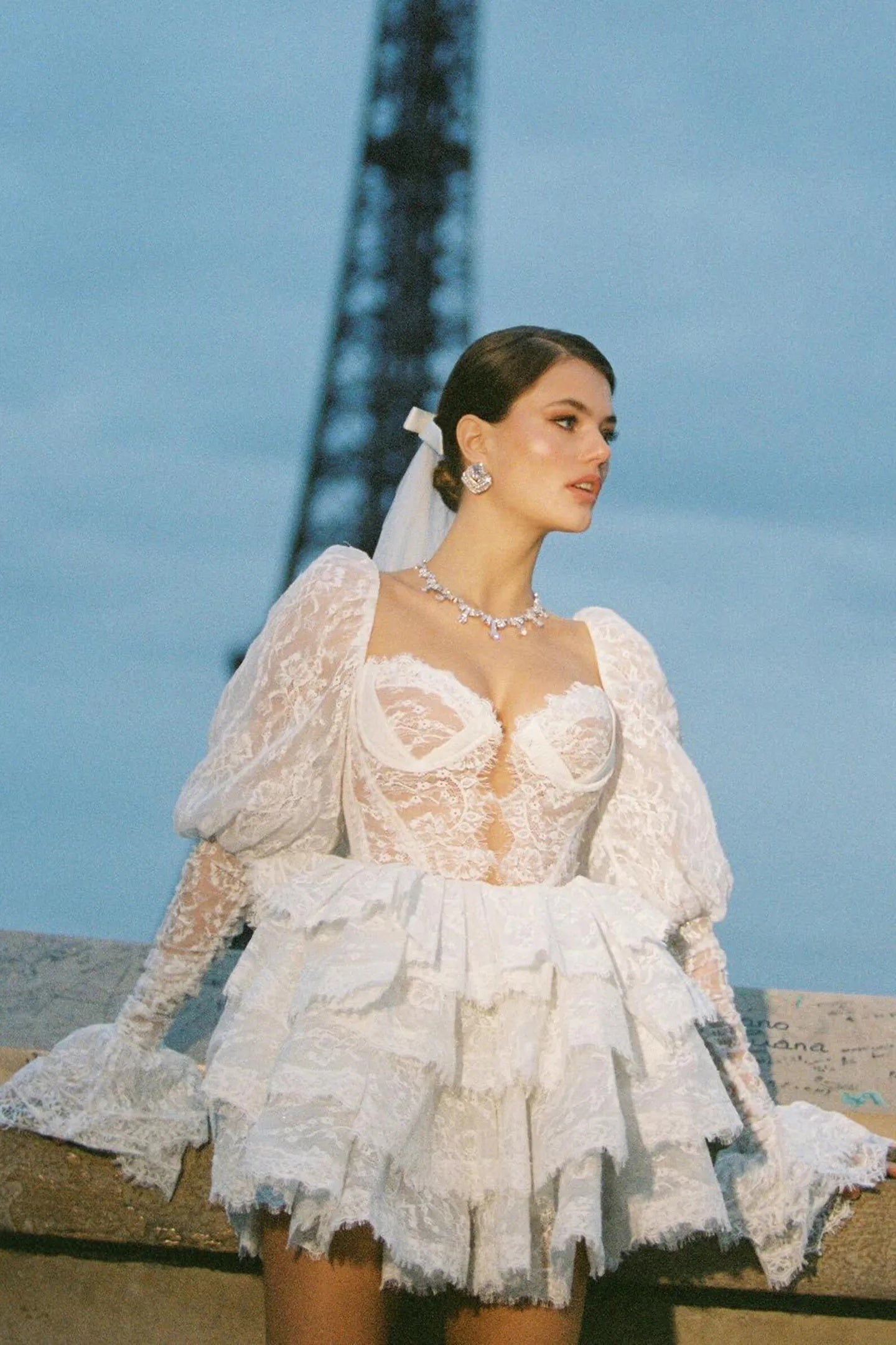 Bonnie Embroidered Lace Puff Sleeve Mini Dress