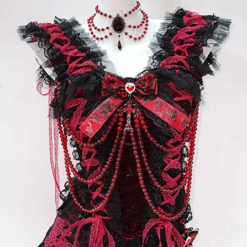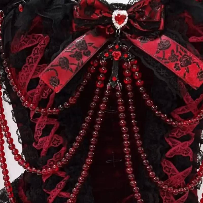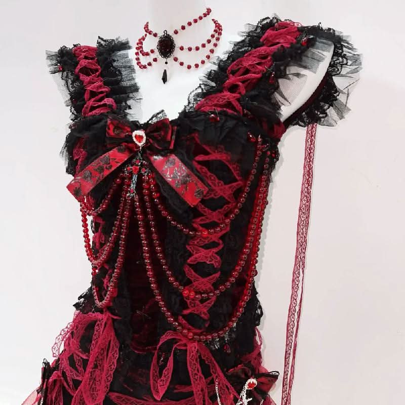Bowknot beaded lace hem lace up v neck mini skirt set