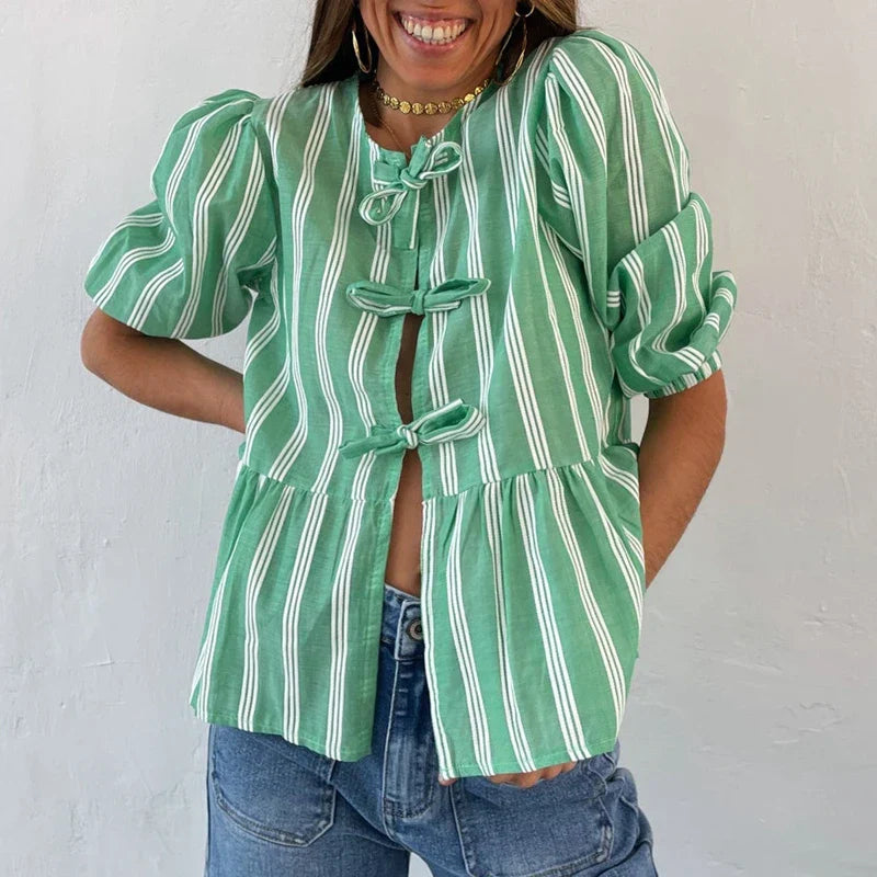 Bowknot Front Hollow Out Vintage Ruffles Puff Sleeve Elegant Sweet Y2K Crop Top