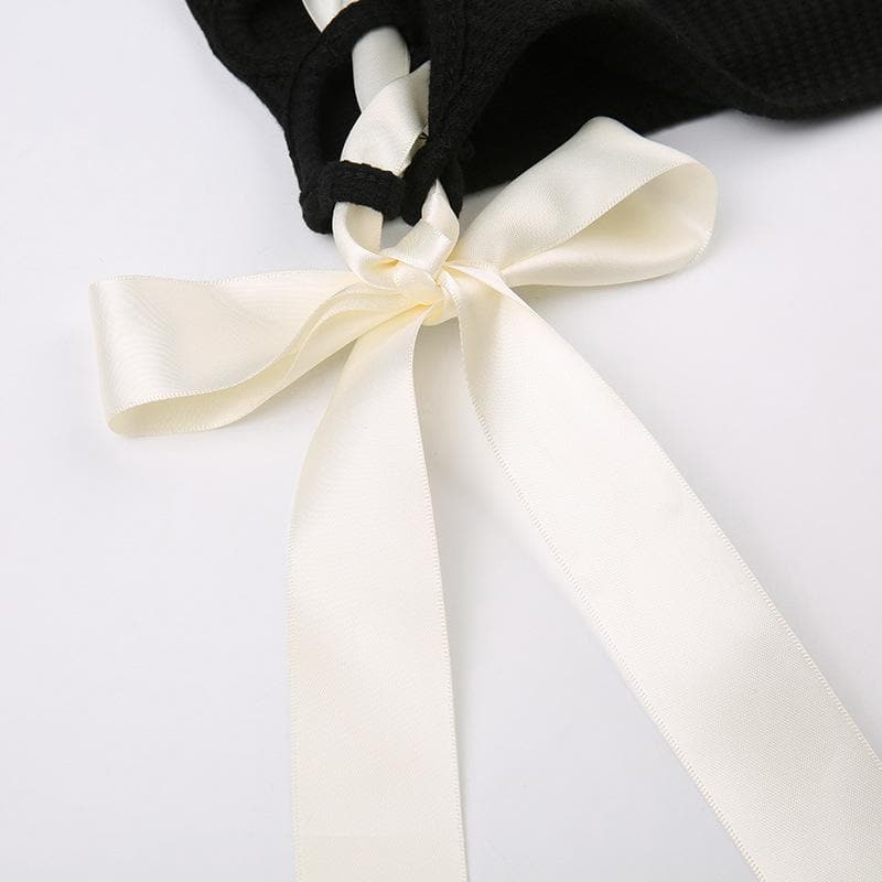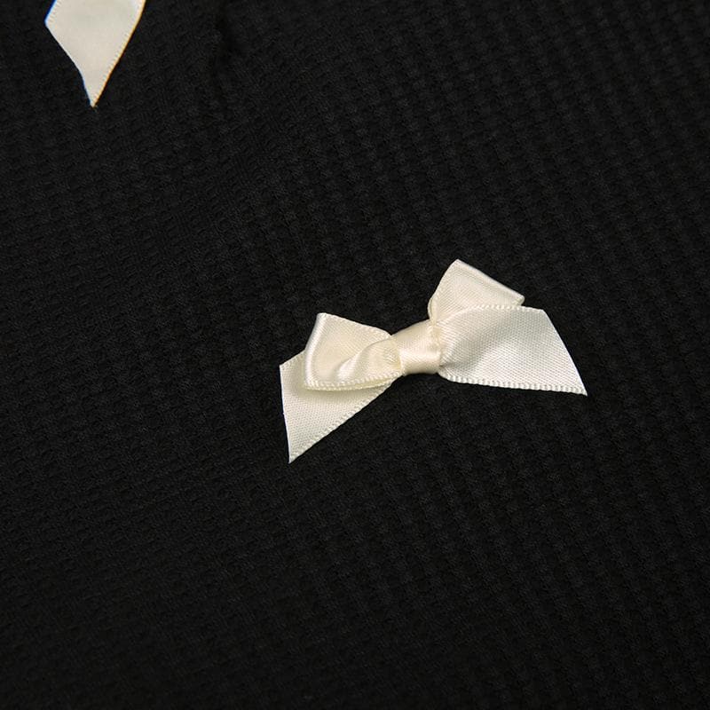 Bowknot long sleeve hollow out lace up contrast cut out top