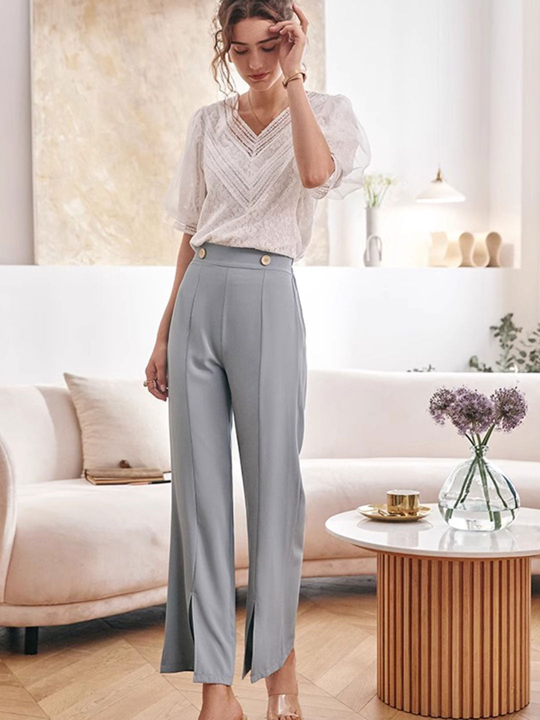 Brianna Retro Lace Puff Sleeve Chiffon Blouse