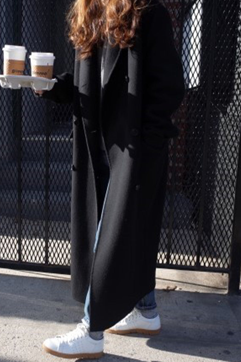 British Style Elegant Solid Pocket Buckle Turn-back Collar Outerwear