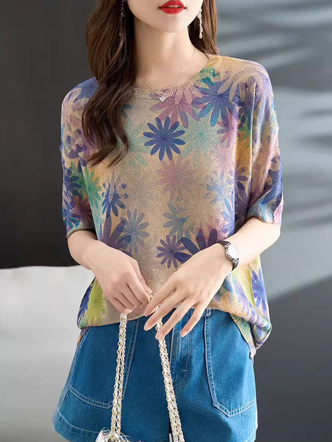 Brooke Loose Crew Neck Printed Knitted Top