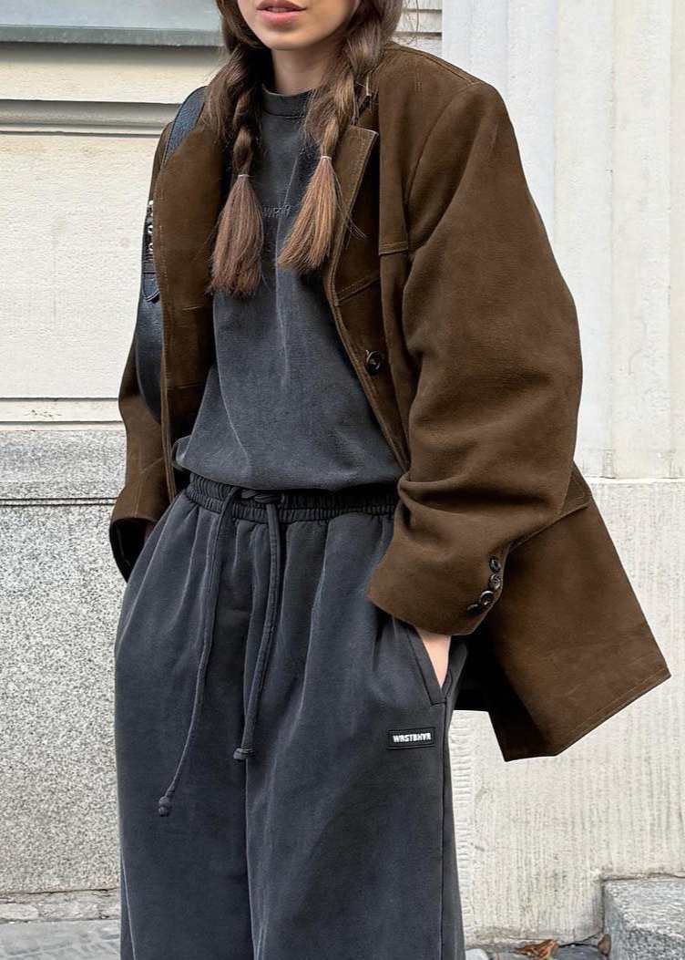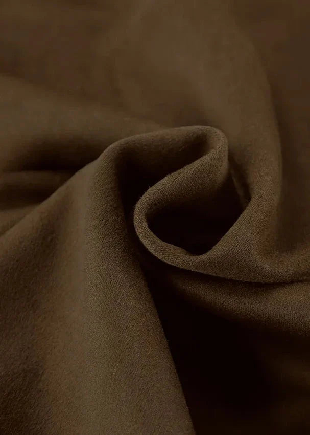This Brushed Velvet Suede Jacket is designed with retro lapels and a relaxed fit, perfect for adding a stylish layer to your outfit. Crafted from premium suede, it offers a soft touch and a rich brown hue that complements any look. Whether you're dressing up for a night out or going for a casual day look, this jacket provides versatility and comfort. Pair it with your favorite jeans or a sleek dress for an effortless, fashionable vibe.