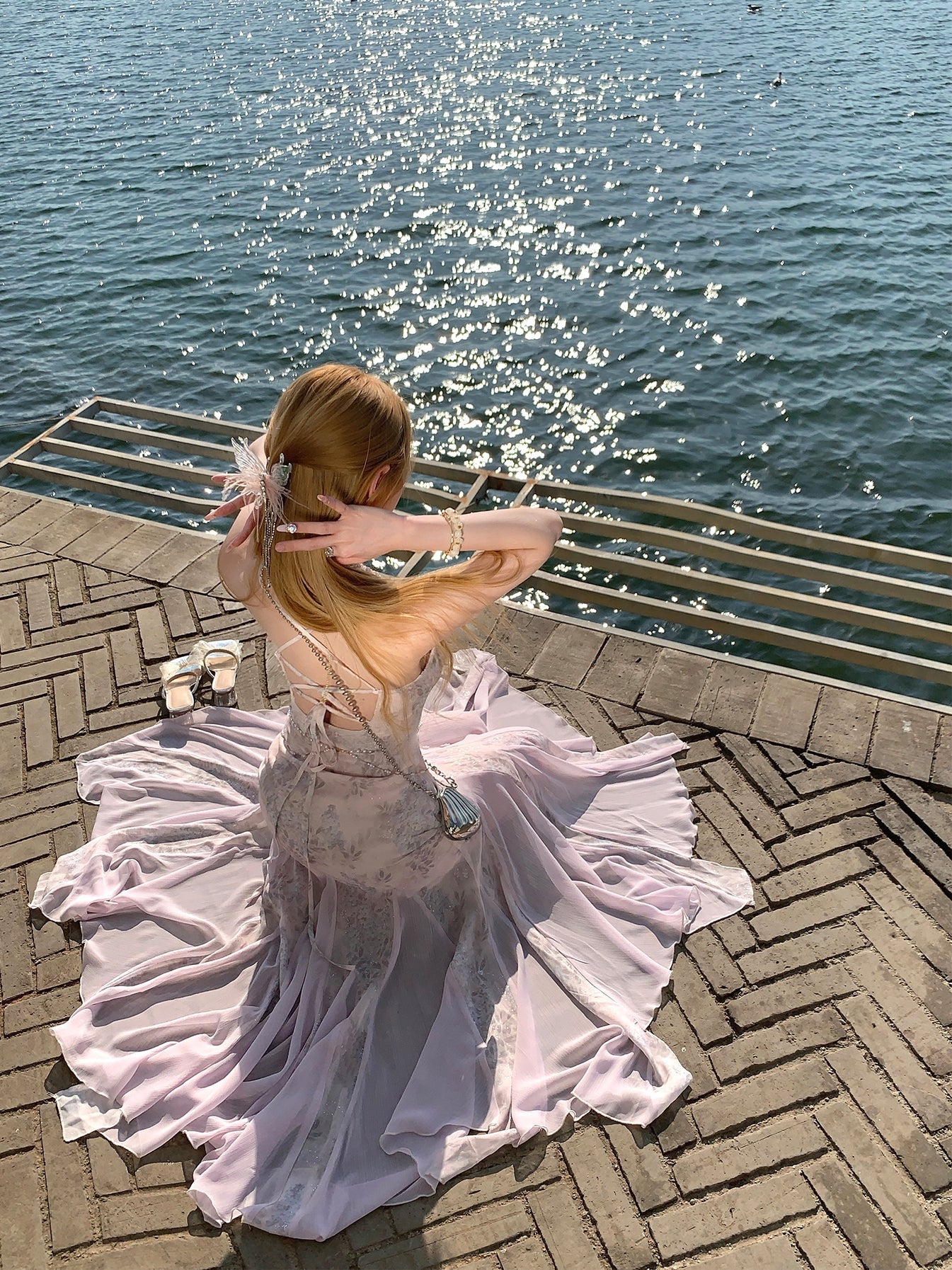 - Butterflies and Floral Sea Camisole Mermaid Dress, Summer Backless Slim-Fit Dress