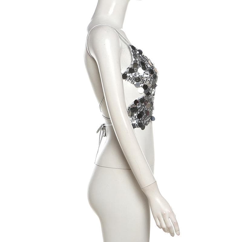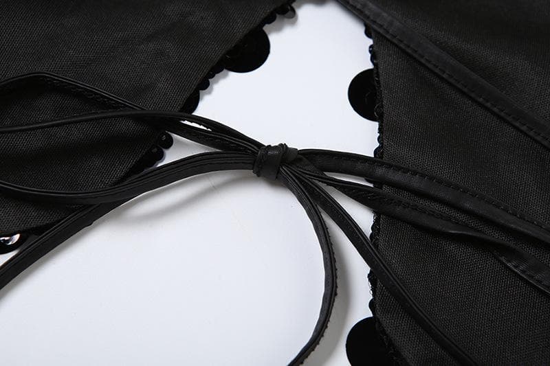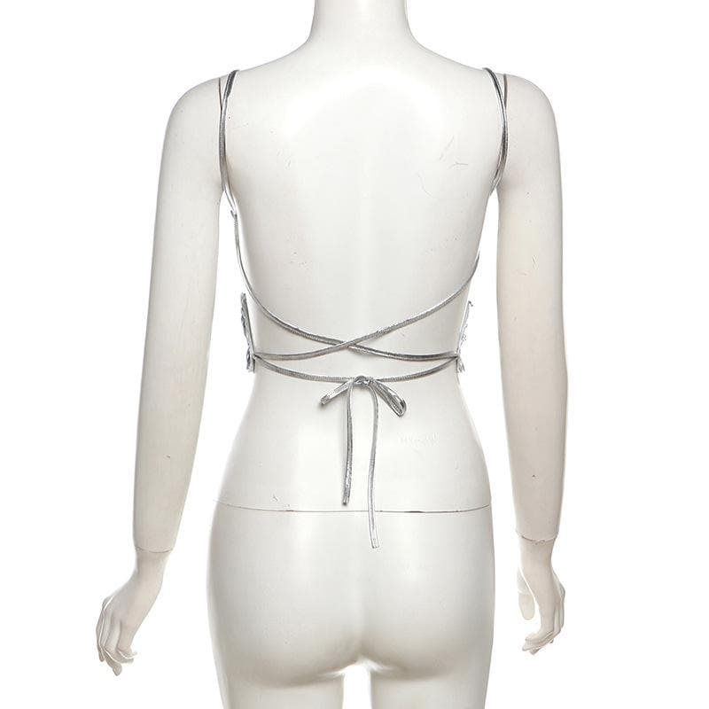 Butterfly pattern glitter lace up cami top