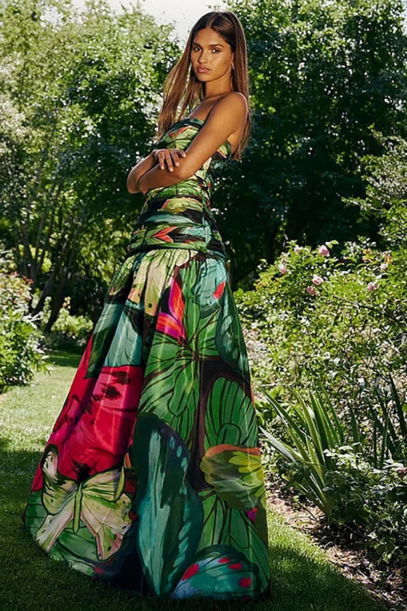 Butterfly Print Ruched Slimming Swimsuit Set