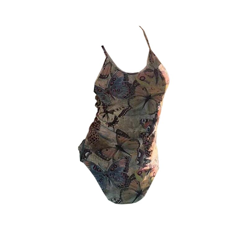 Butterfly print u neck backless cami top