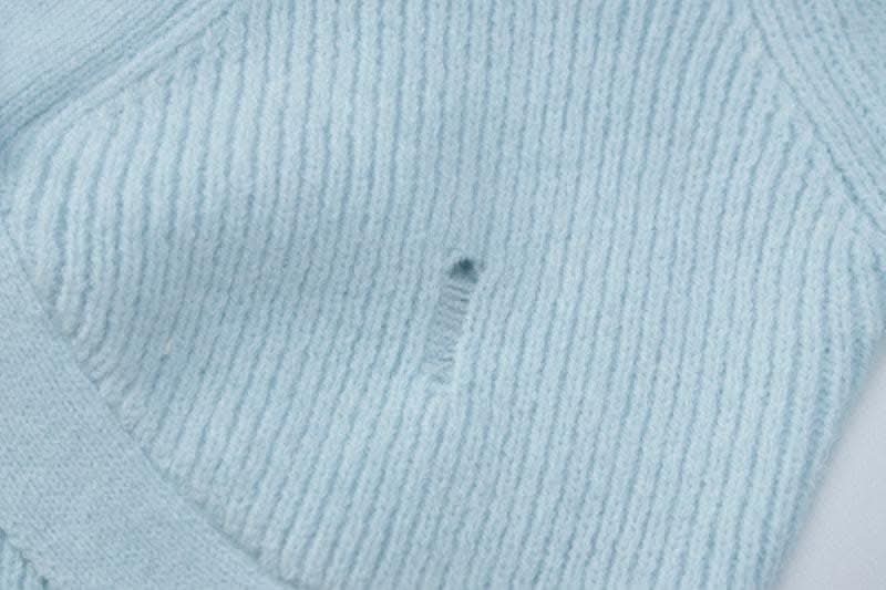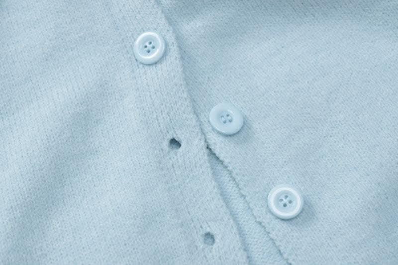 Button knitted solid long sleeve turnover collar mini skirt set-final-sale
