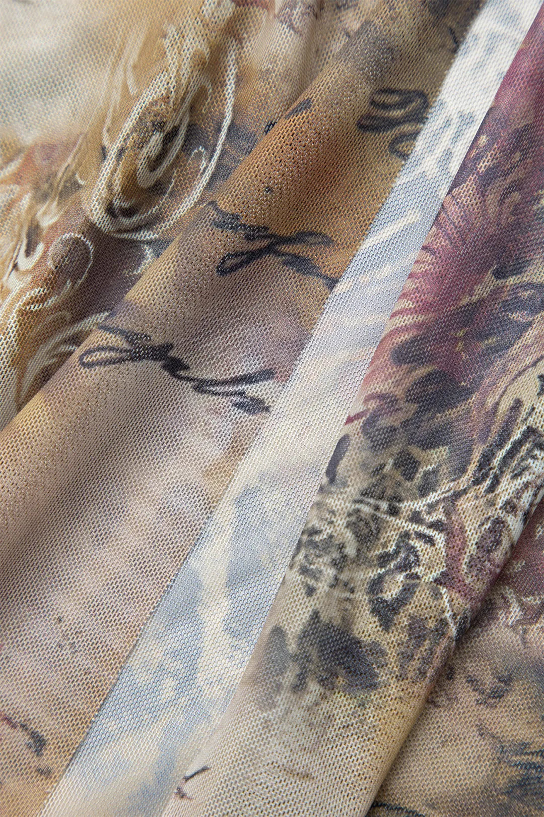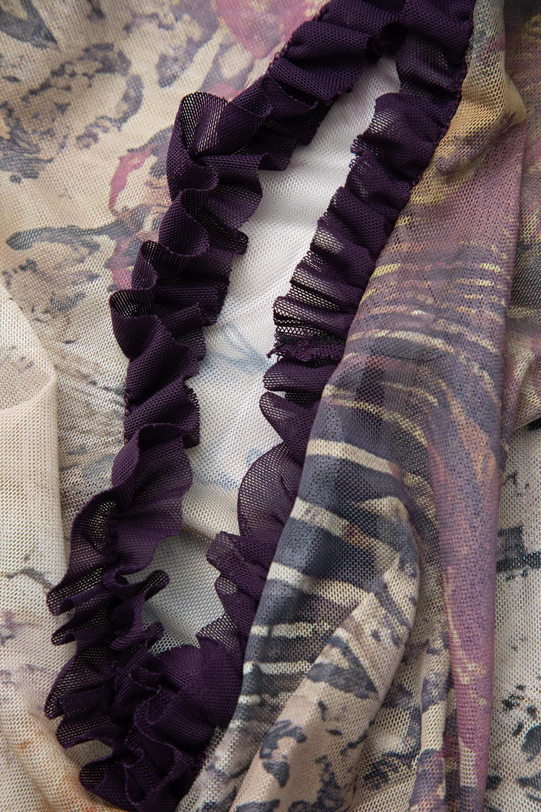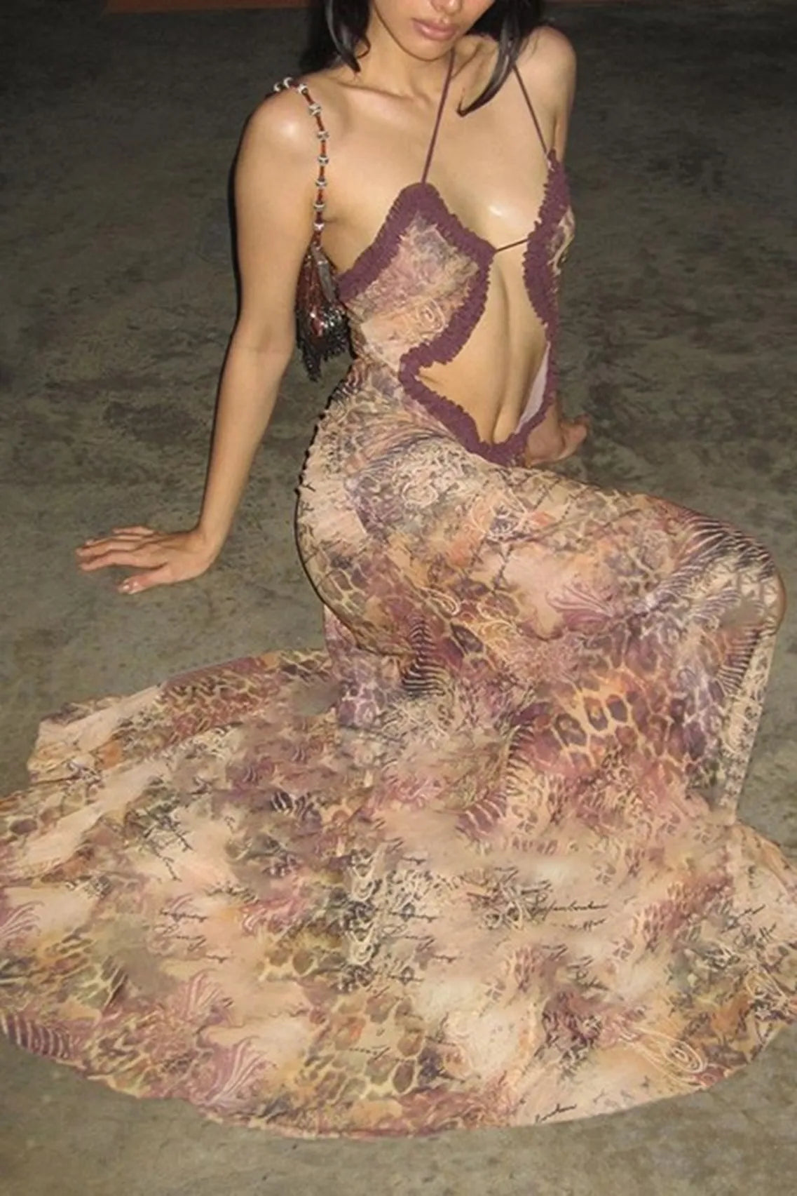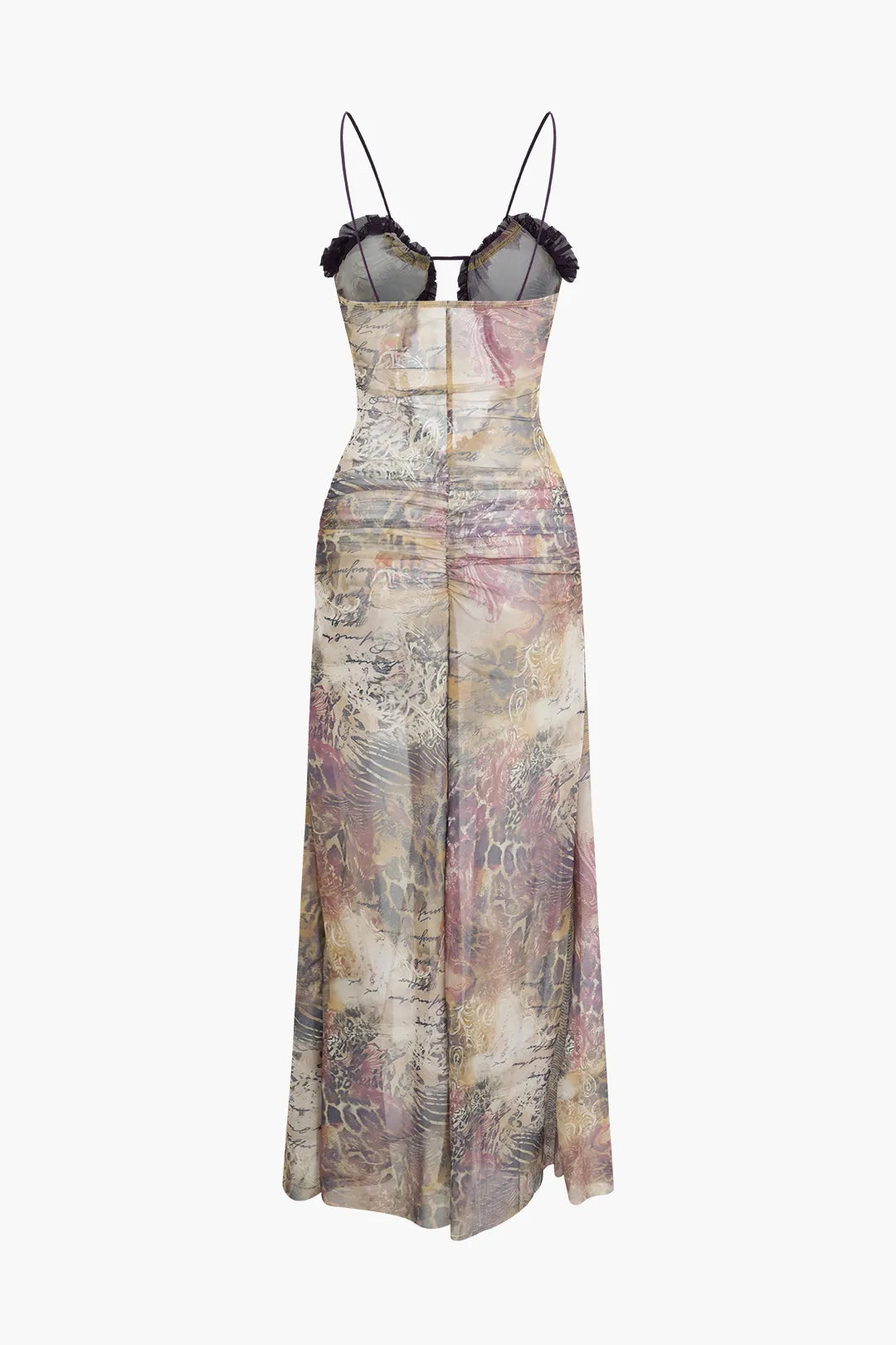 Caity Printed Ruffle Cut Out Mesh Maxi Dress