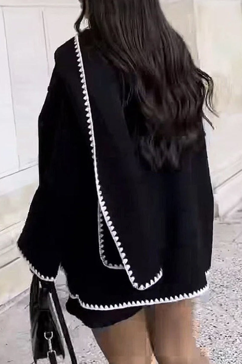 Casual British Style Solid Buttons Contrast Scarf Collar Outerwear