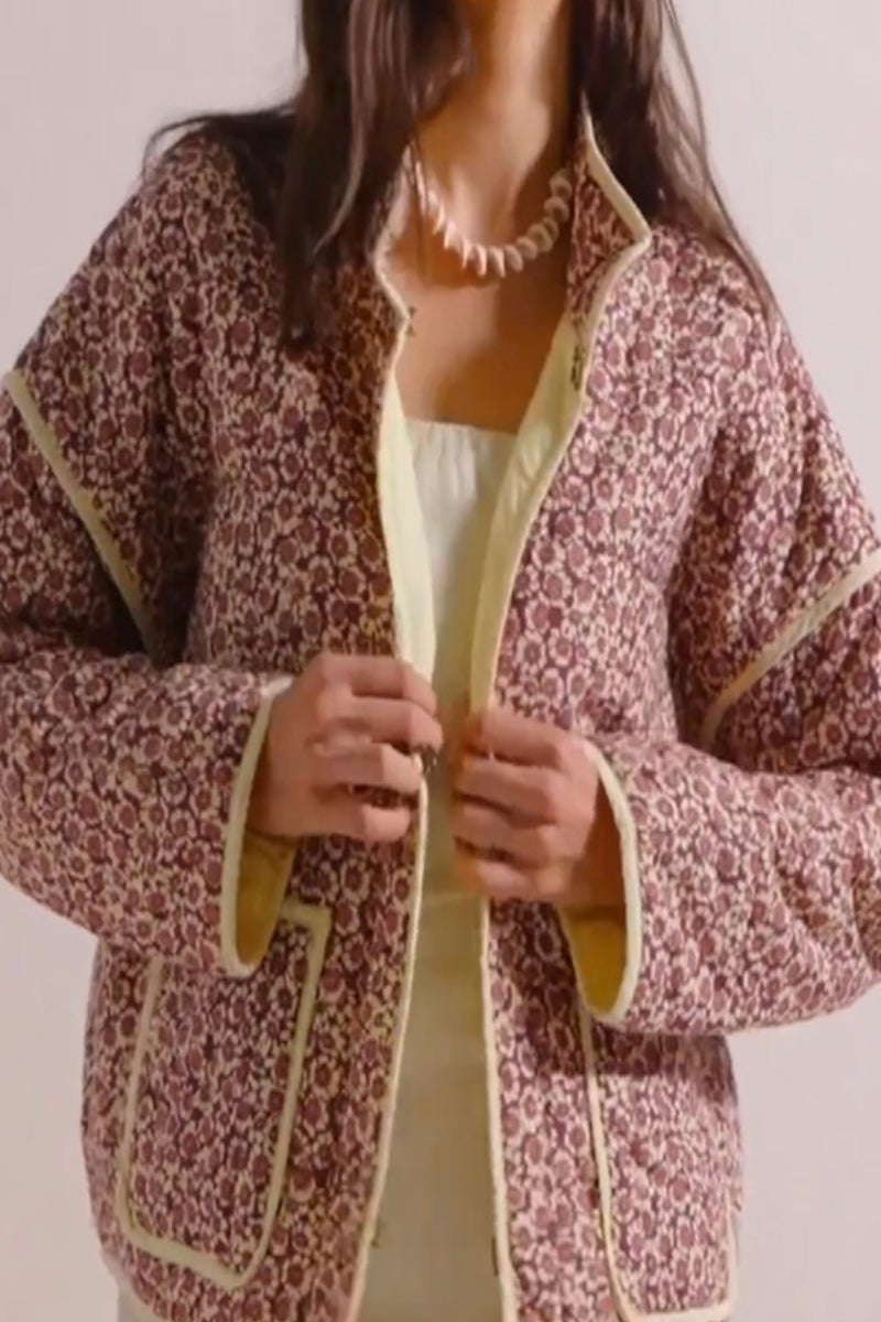 Casual College Floral Pocket Contrast Outerwear