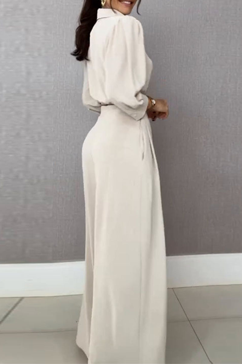 Casual Daily Lace Up Turndown Collar Long Sleeve Two Pieces