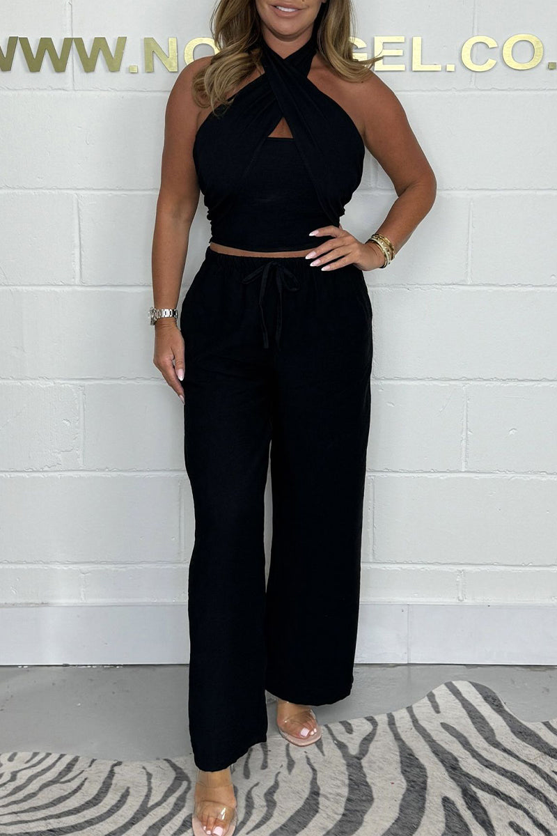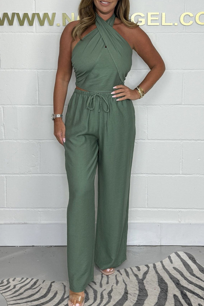 Casual Daily Solid Color Pocket Lace Up Halter Sleeveless Two Pieces(4 Colors)