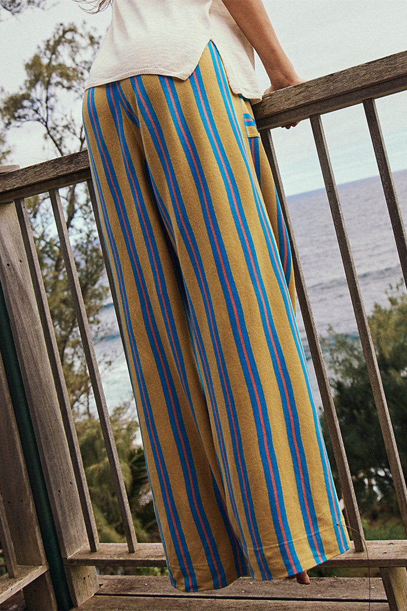 Casual Daily Striped Print Pocket Lace Up Loose Straight Full Print Bottoms(5 Colors)