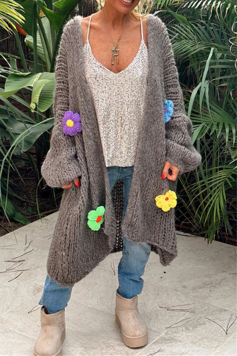 Casual Elegant Solid Appliques Weave Cardigan Collar Outerwear