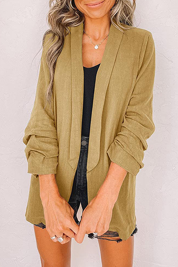 Elegant Solid Patchwork Pocket Turndown Collar Outerwear(12 Colors)
