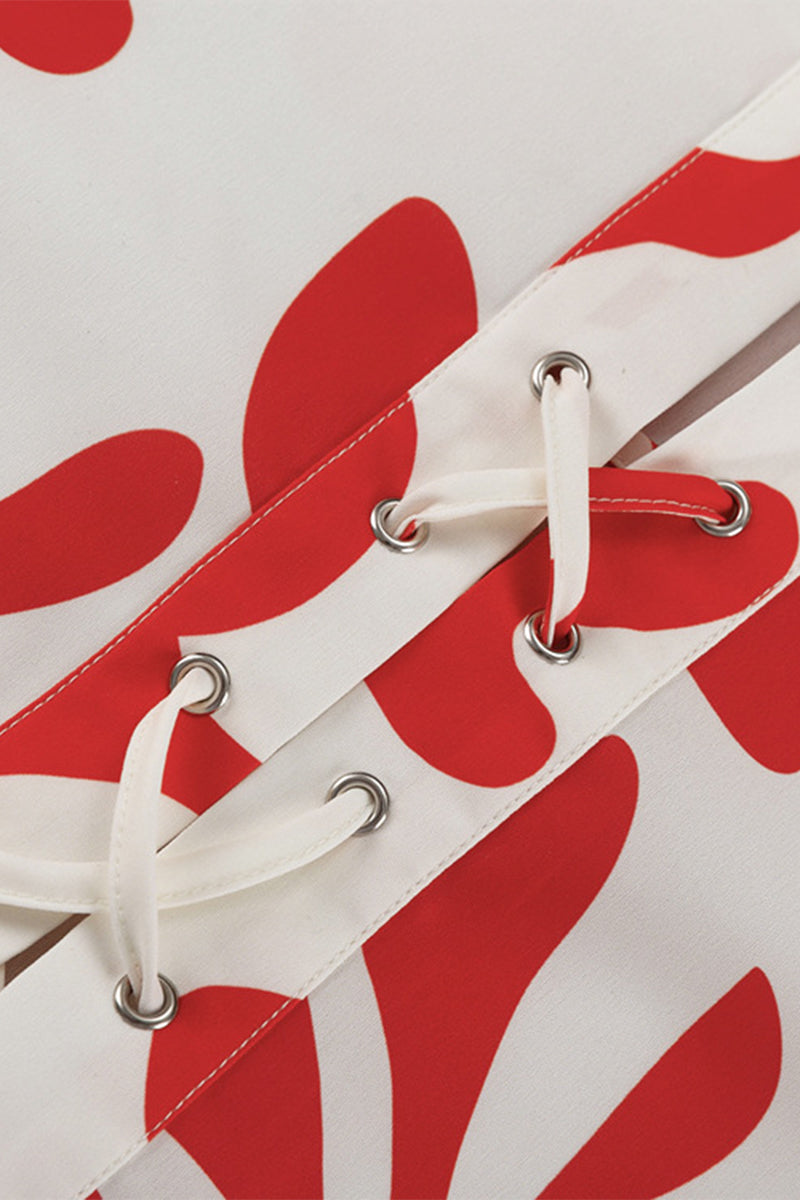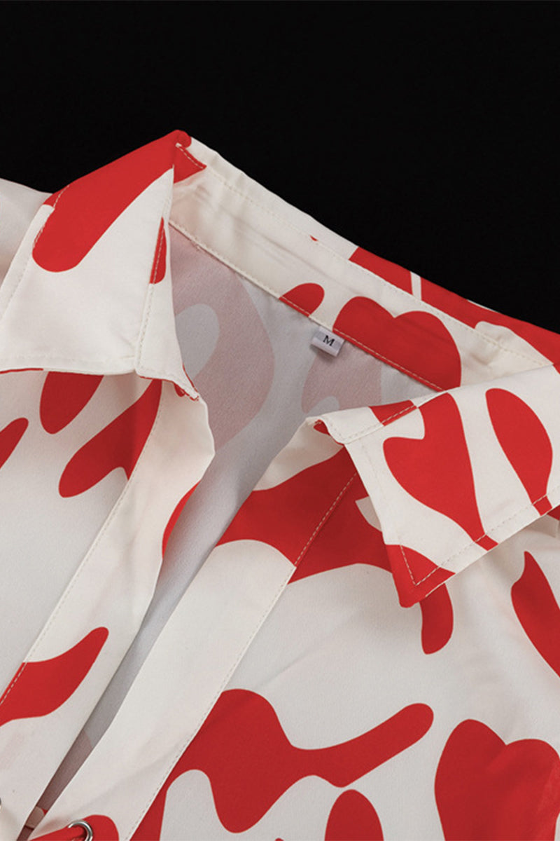 Casual Floral Patchwork Turndown Collar Long Sleeve Two Pieces