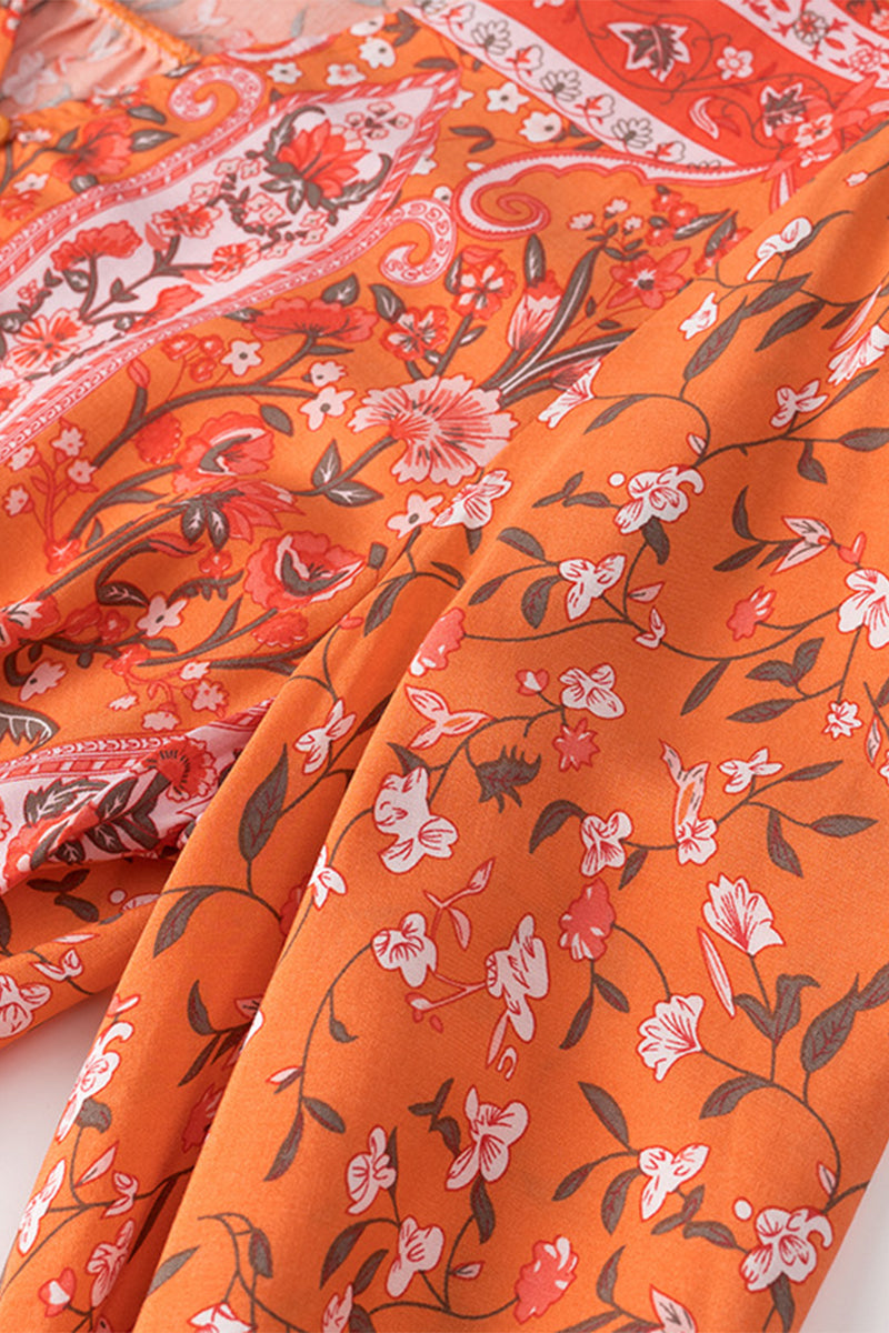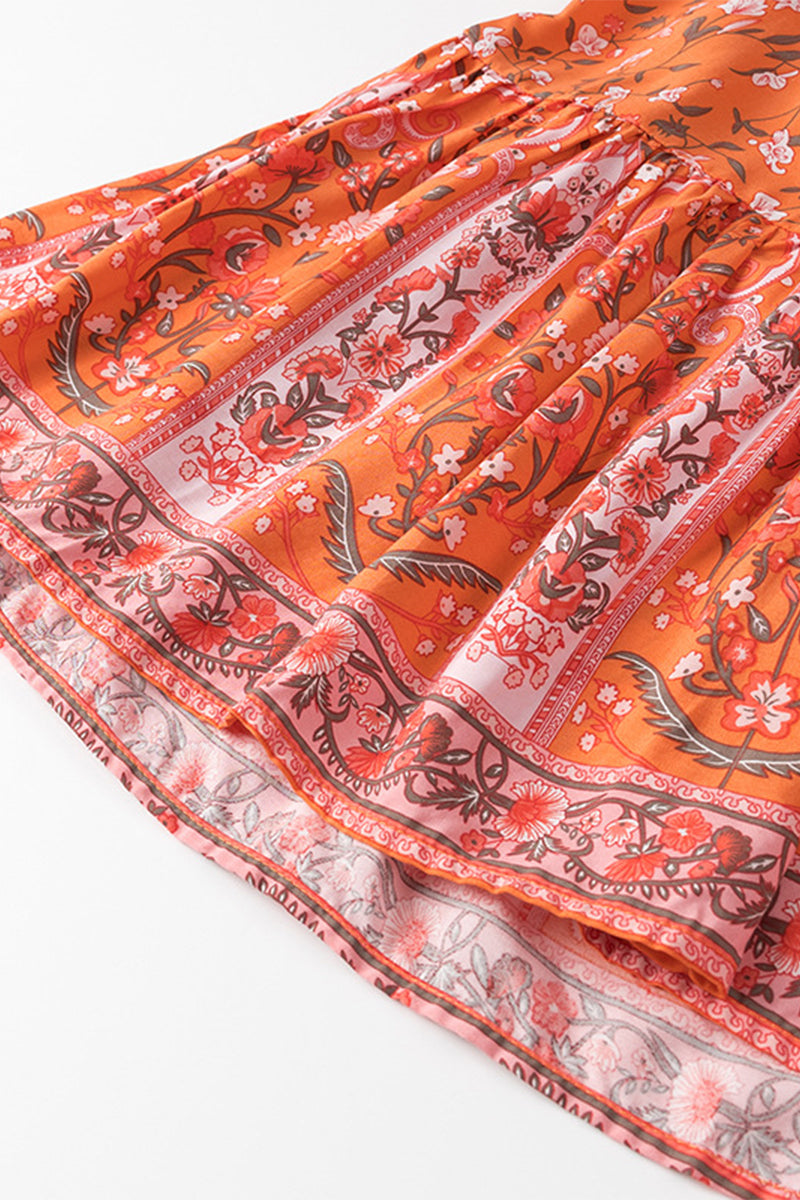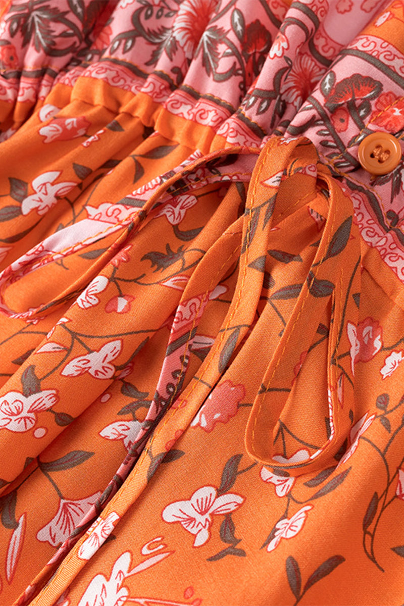Casual Floral Print Lace Up V Neck A Line Dresses