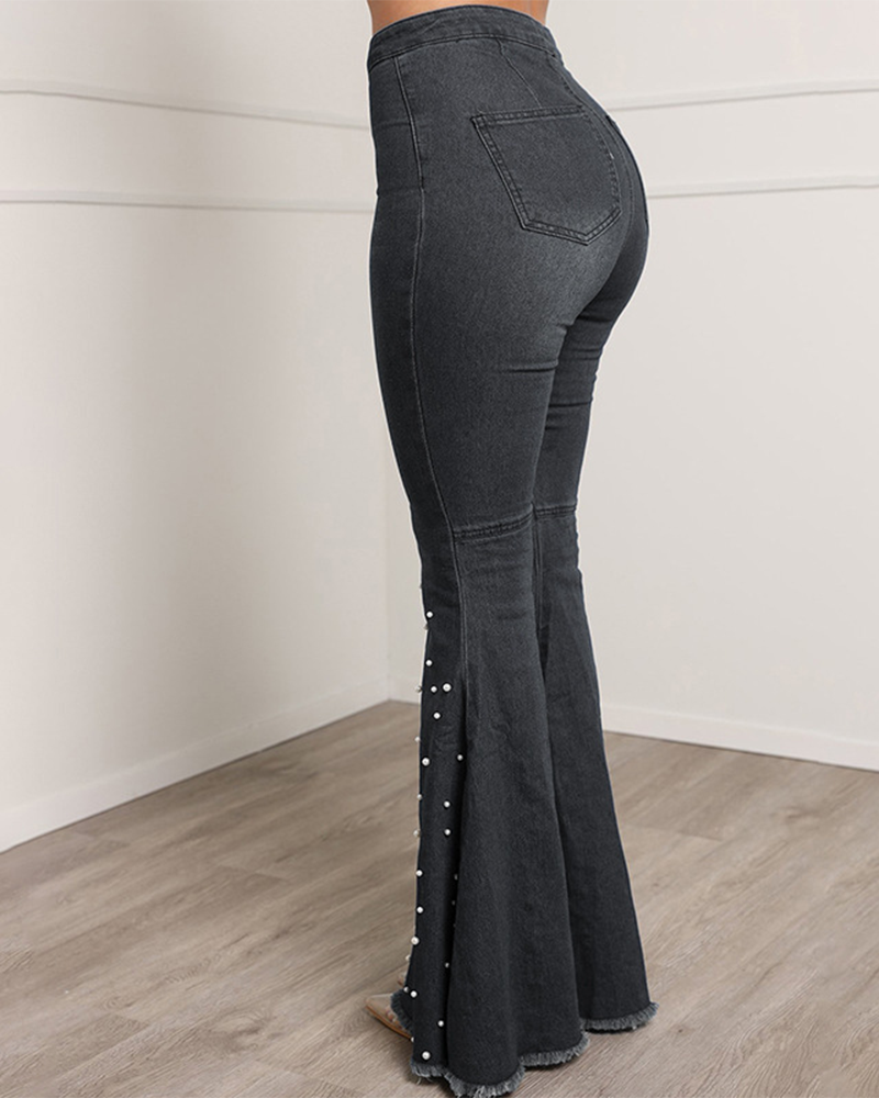 - Fashionable high-waisted design: Solid Color Stretch High Waist Flare Jeans adopt a high-waisted design, which perfectly outlines a beautiful waistline and makes your figure more slim and charming. The high-waist design can also effectively enhance the leg lines and show a slender figure.