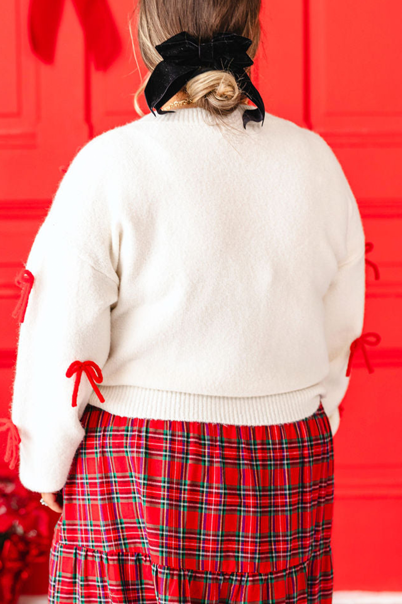 Casual Party Bow Patchwork Contrast O Neck Sweaters