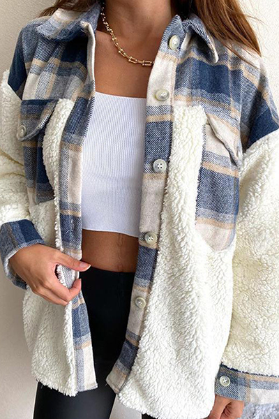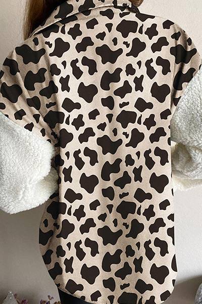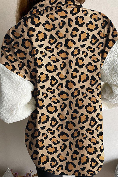 Casual Plaid Leopard Pocket Buckle Turndown Collar Outerwear(6 Colors)