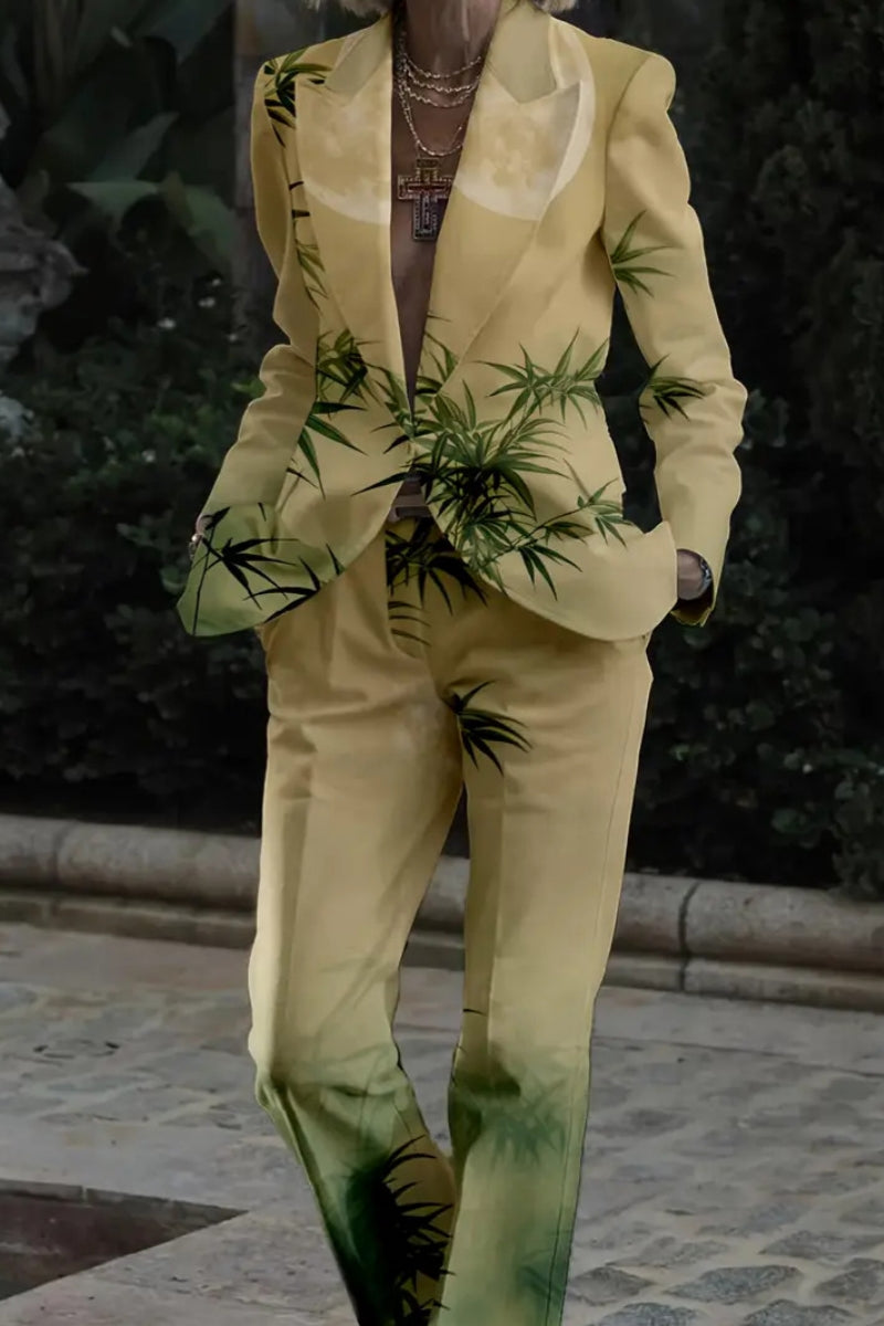 Casual Print Buttons Turn-back Collar Long Sleeve Two Pieces(3 Colors)