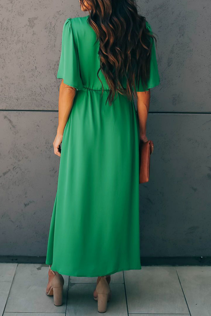 Casual Print Patchwork V Neck Cake Skirt Dresses(3 Colors)