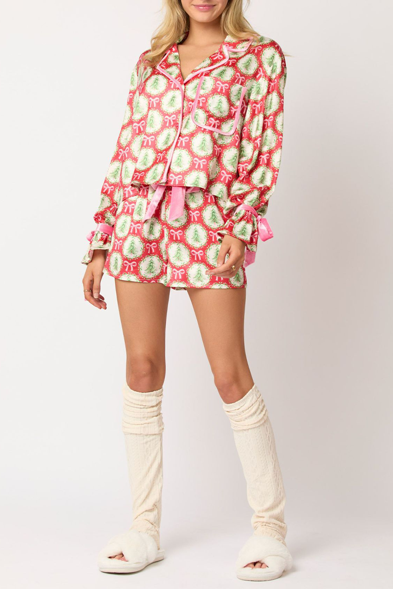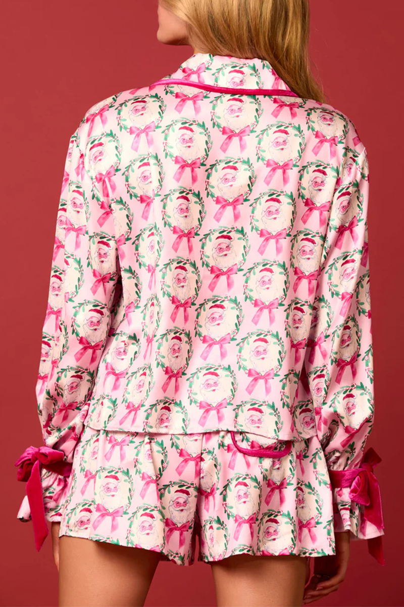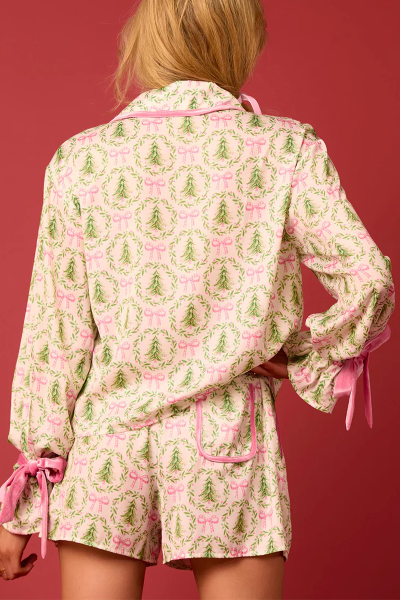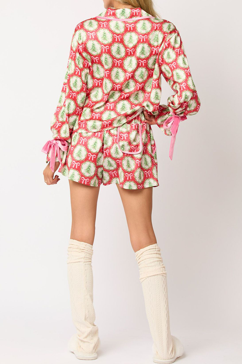 Casual Santa Claus Christmas Tree Lace Up Contrast Turndown Collar Long Sleeve Two Pieces(4 Colors)