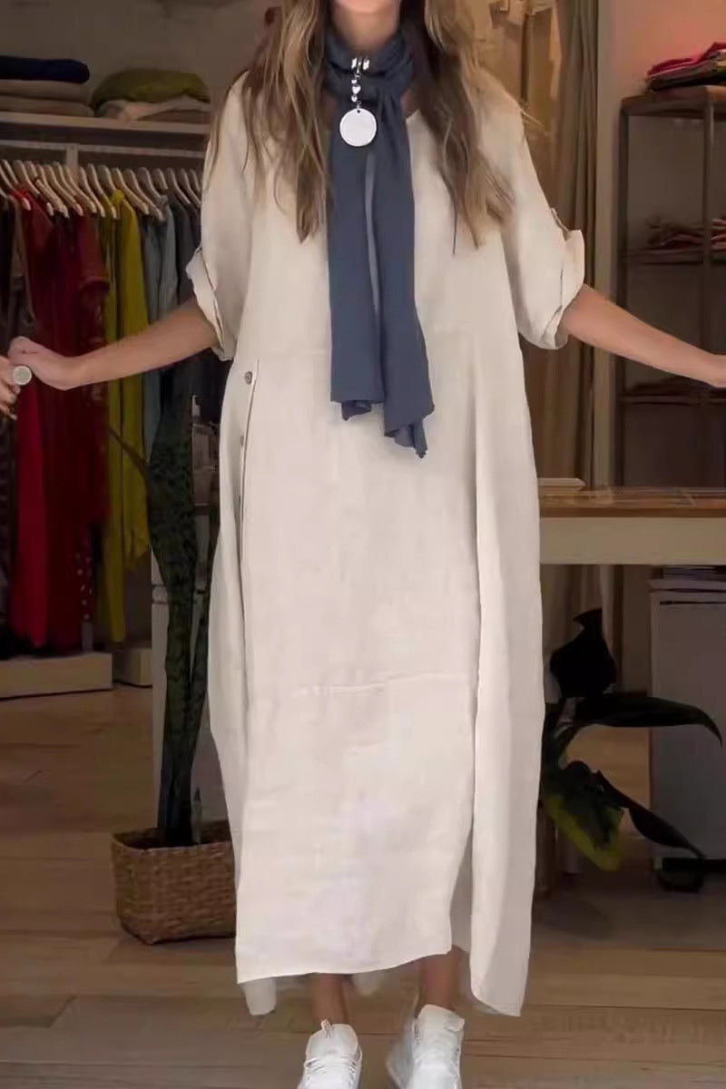 Casual Simplicity Solid Buttons O Neck A Line Short Sleeve Dress(6 Colors)