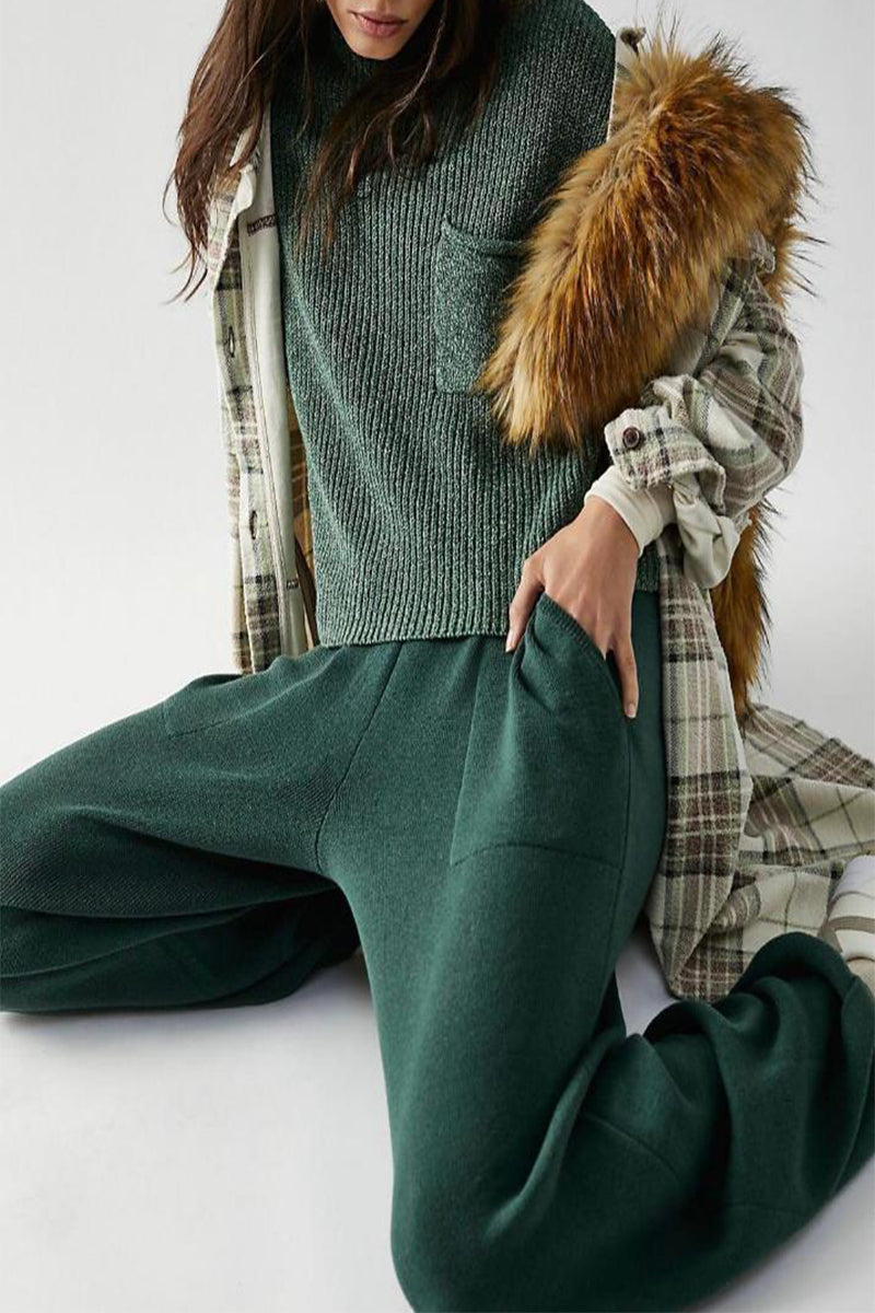 Casual Simplicity Solid Pocket O Neck Two Pieces