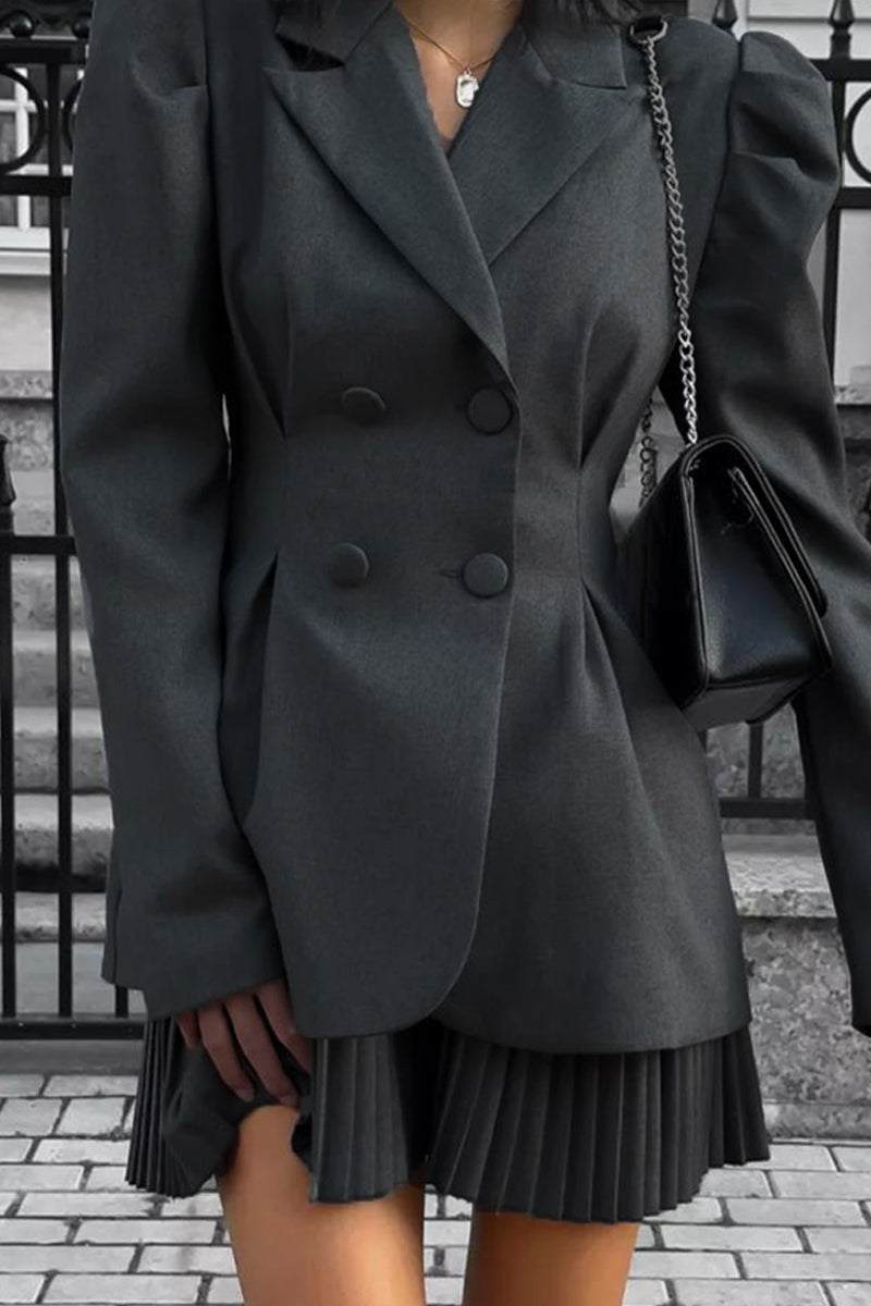 Casual Buttons Turn-back Collar Long Sleeve Two Pieces(3 Colors)