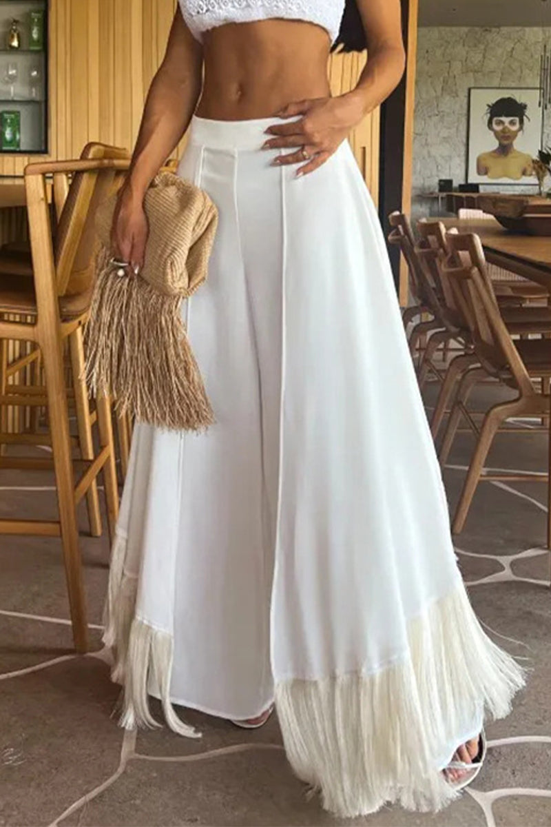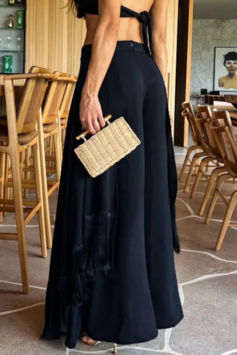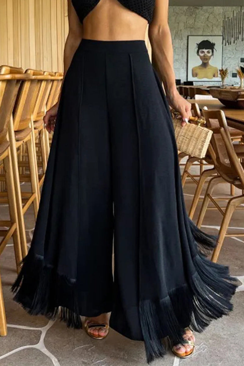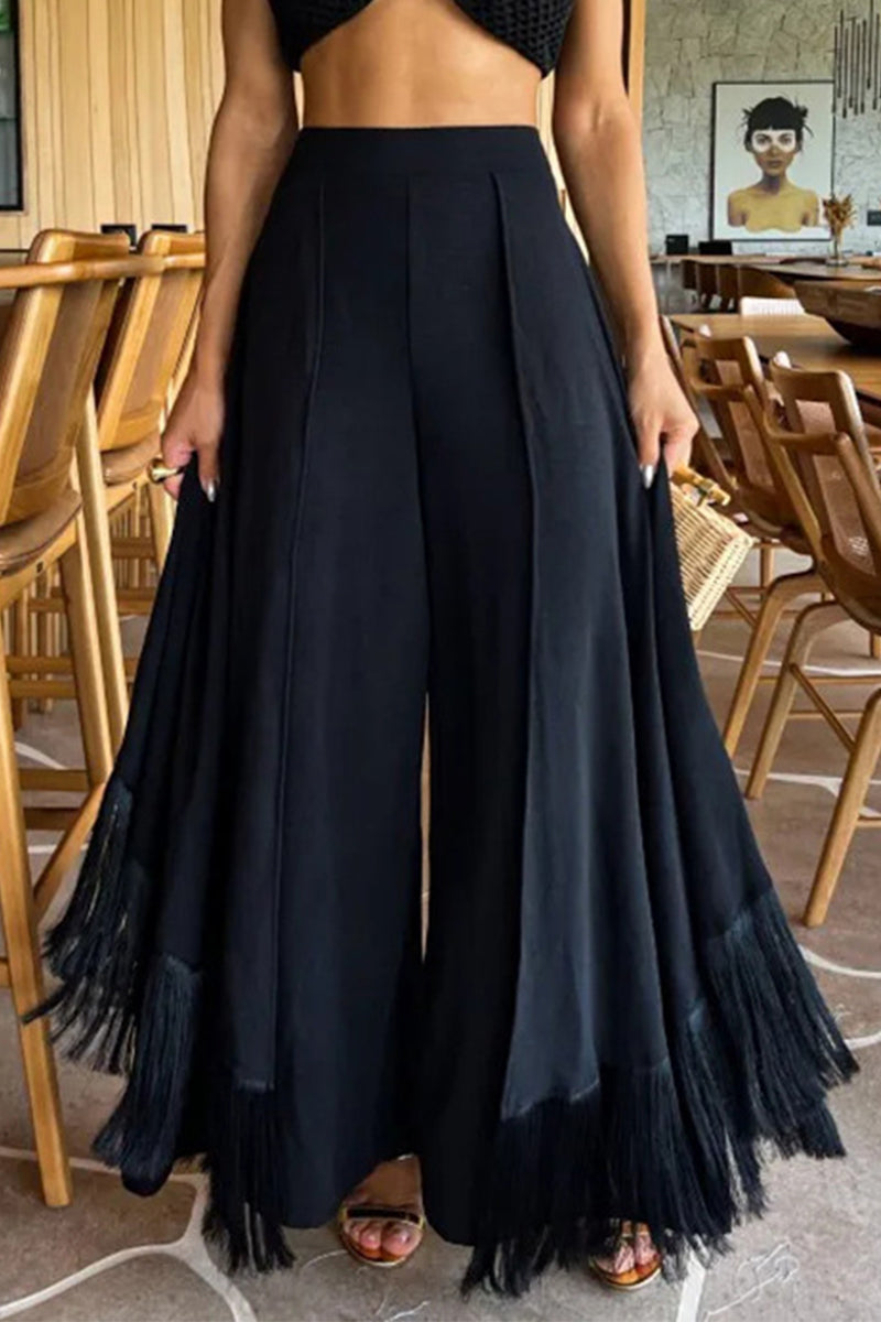 Casual Irregular Fringed Hem Boot Cut Speaker Bottoms(3 Colors)
