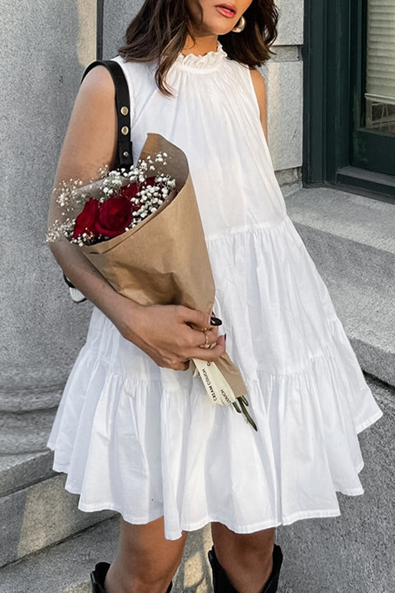 Casual Patchwork Ruffle O Neck Sleeveless Dresses