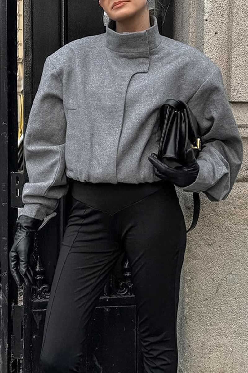 Casual Pocket Buttons Gross Mandarin Collar Outerwear