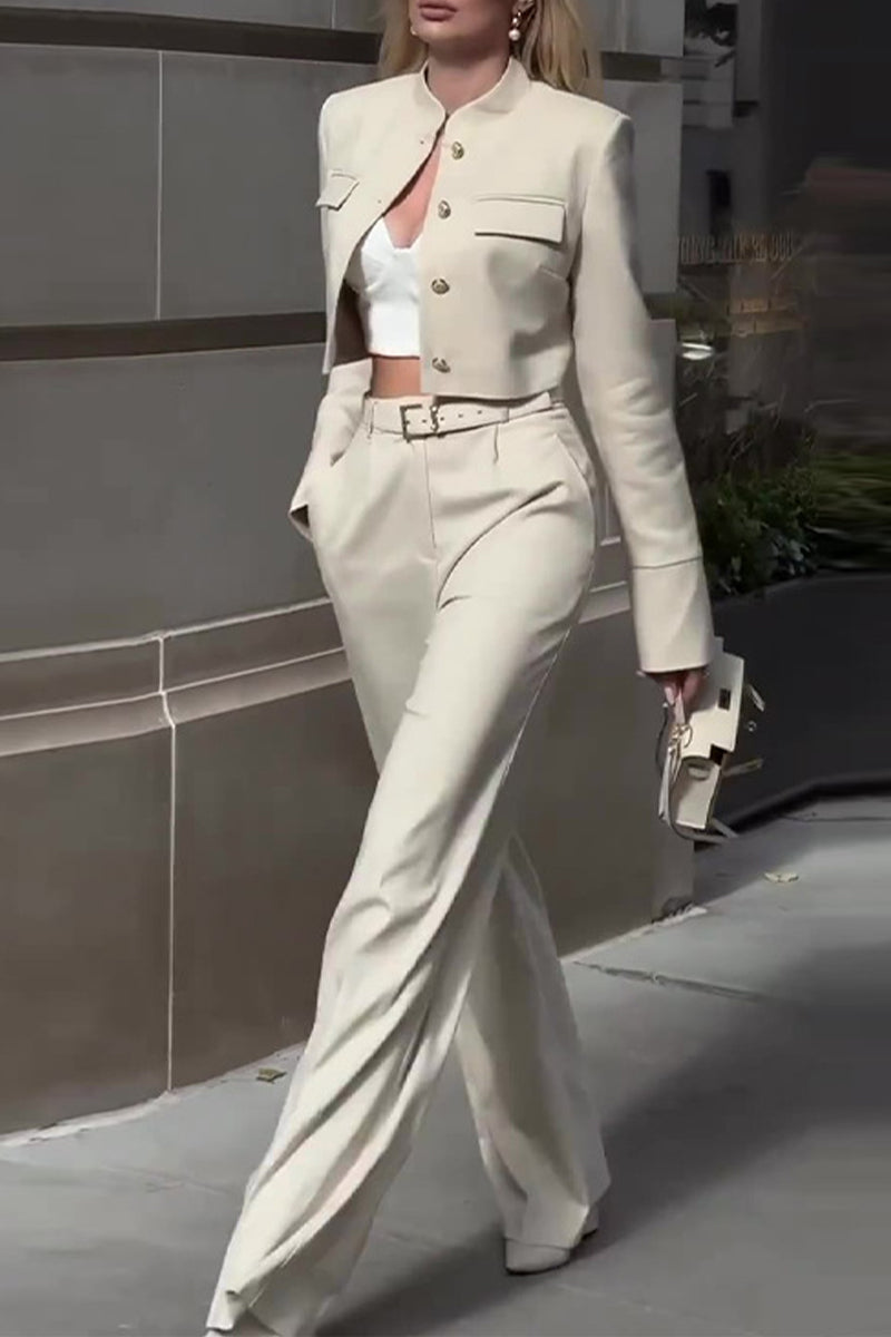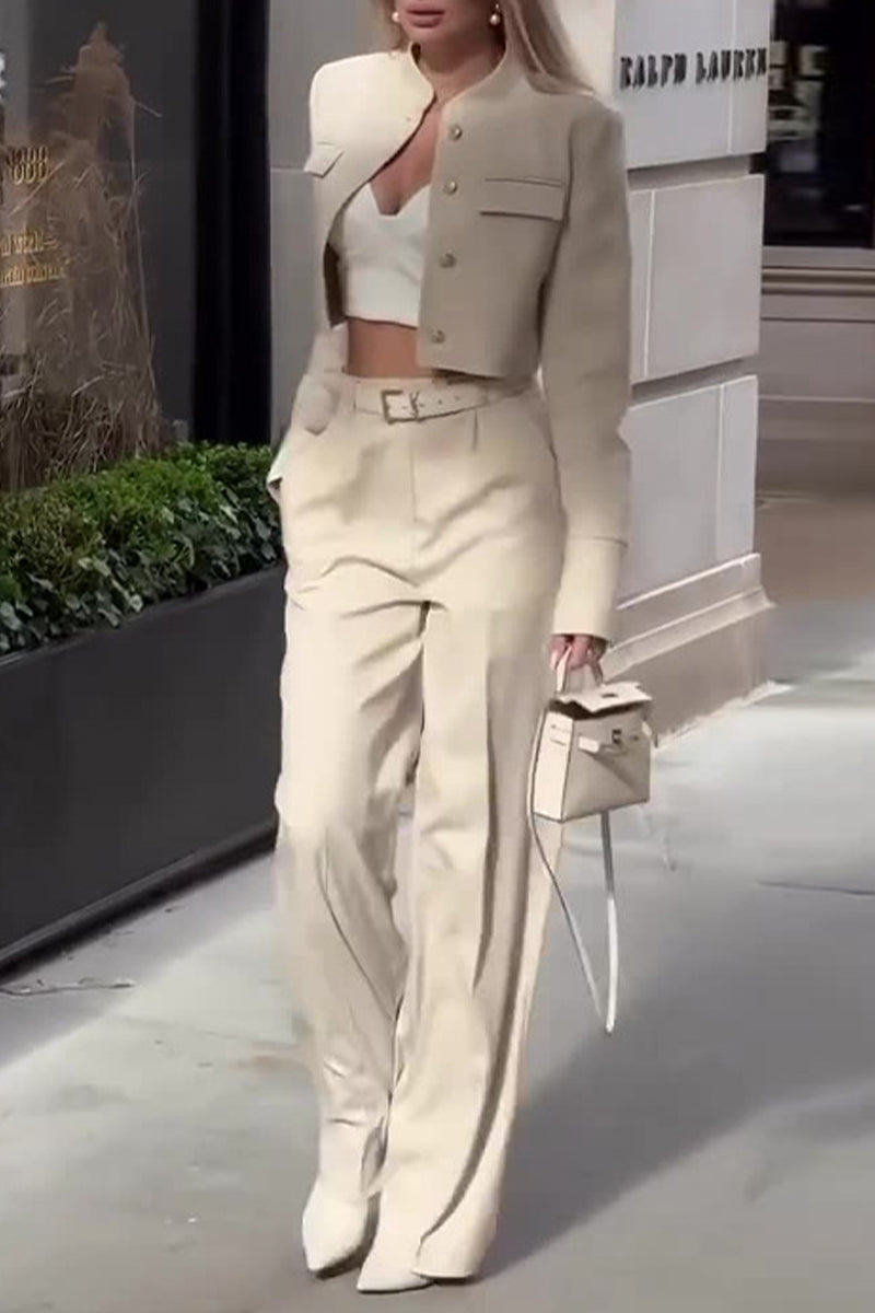 Casual Pocket Buttons O Neck Long Sleeve Two Pieces