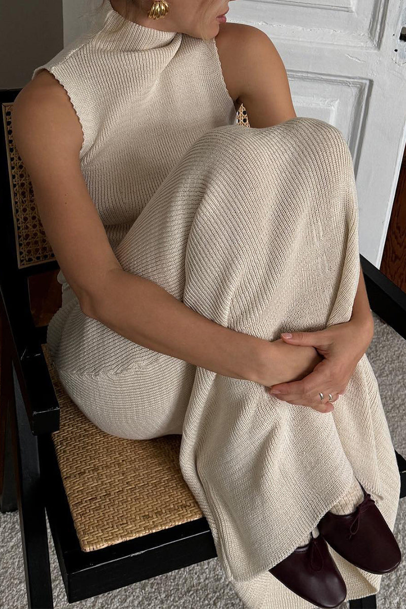 Casual Weave Turtleneck Sleeveless Two Pieces(4 Colors)