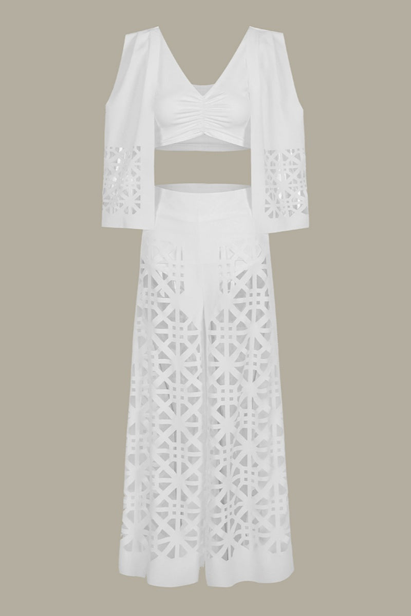 Casual Solid Hollowed Out V Neck Sleeveless Two Pieces