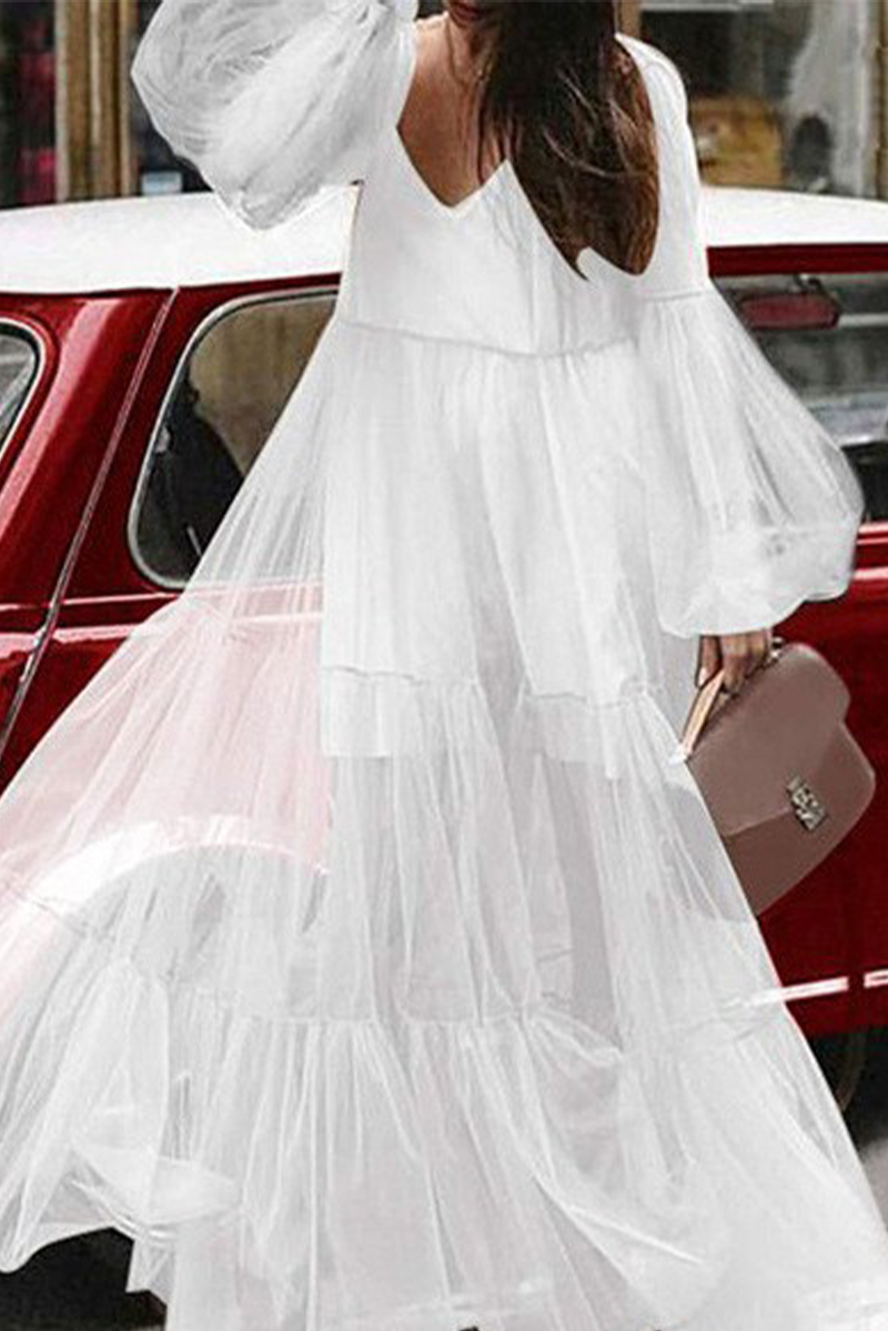 Casual Solid Mesh V Neck Mesh Dress Dresses(3 Colors)