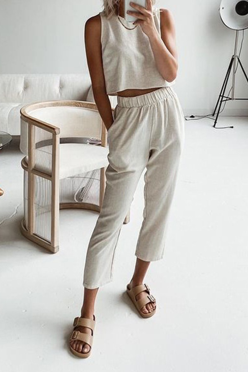 Casual Solid Patchwork O Neck Sleeveless Two Pieces(4 Colors)
