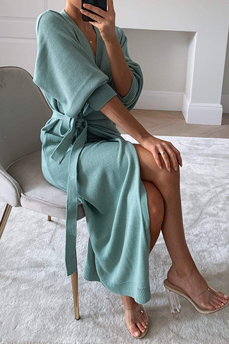 Casual Solid Patchwork V Neck Waist Skirt Dresses(5 Colors)