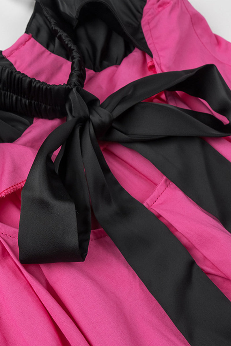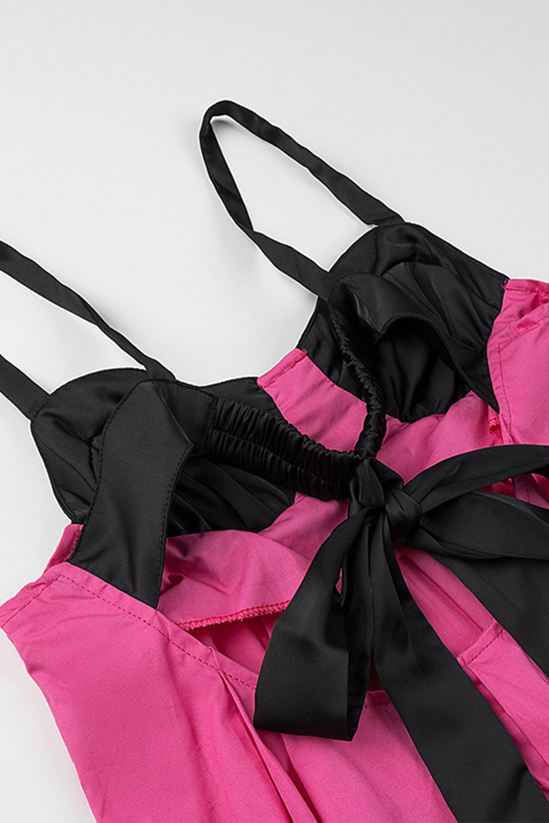 Casual Solid Patchwork With Bow Contrast V Neck Sling Dresses