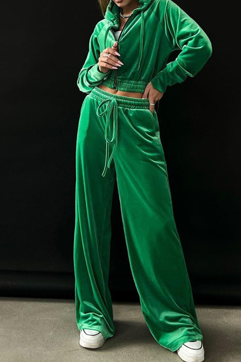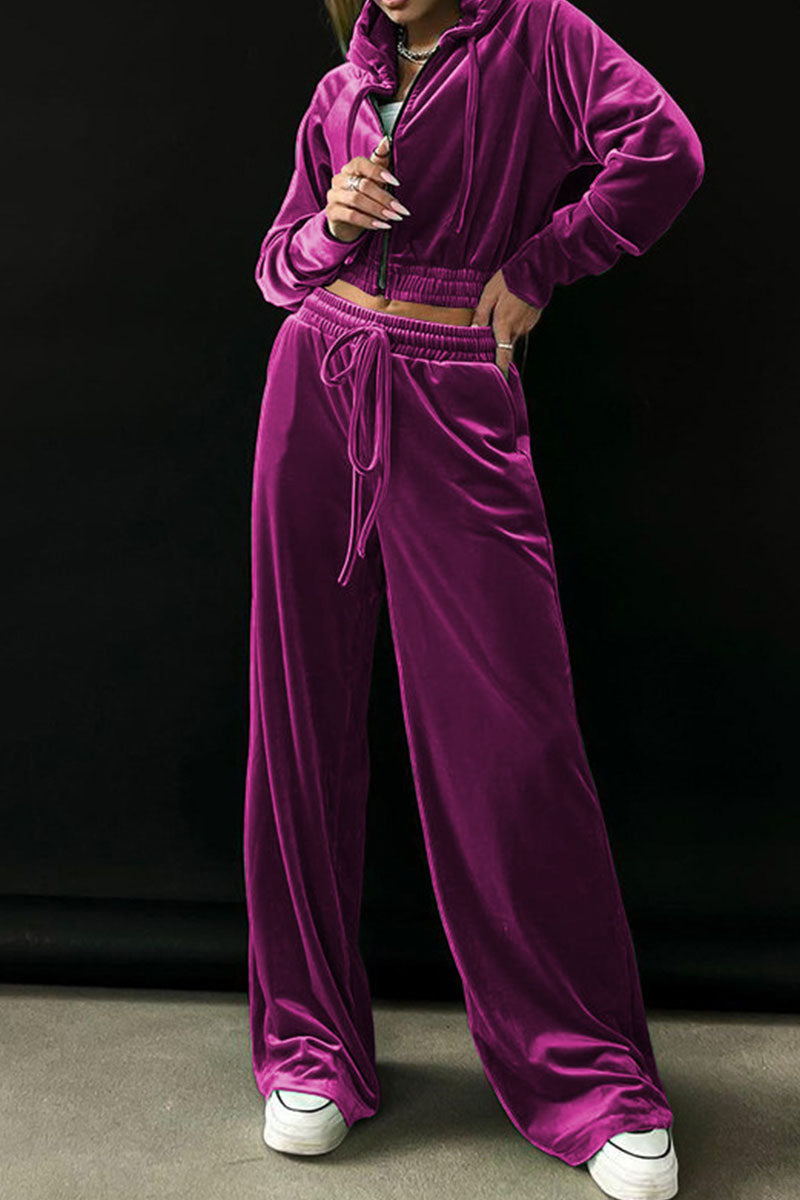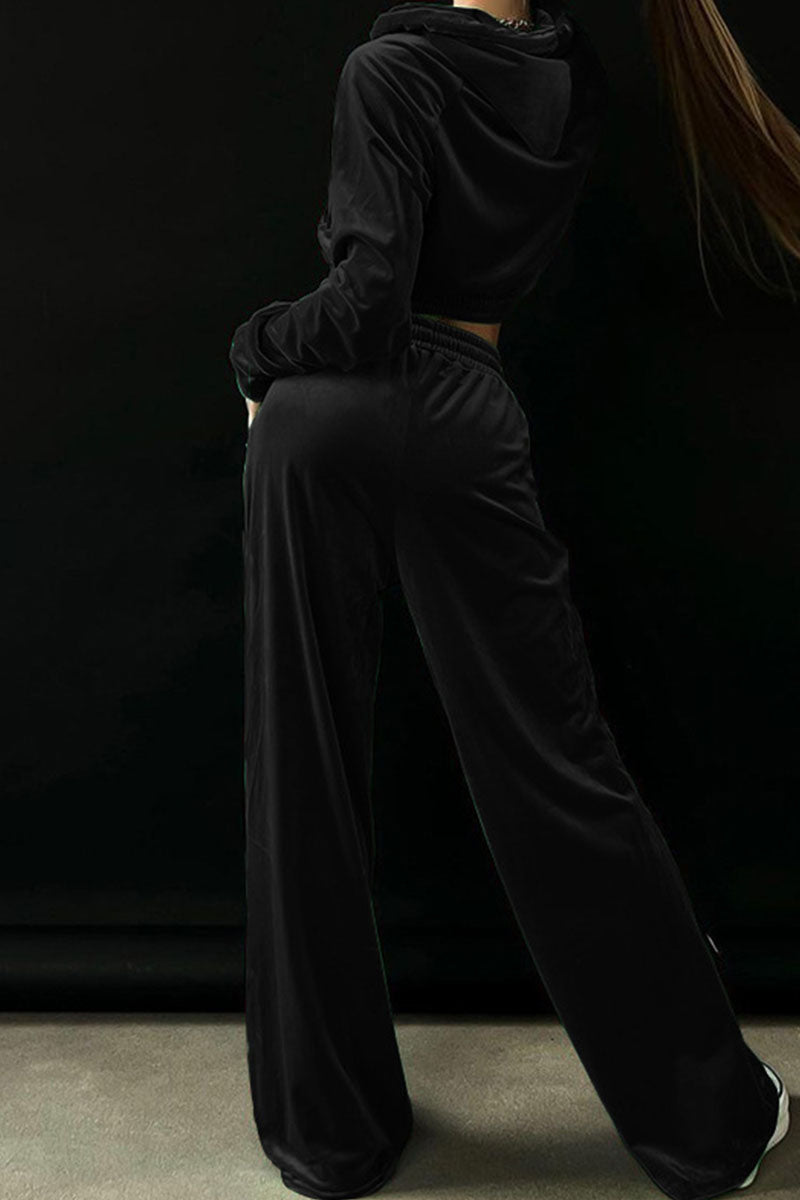 Casual Solid Patchwork Zipper Hooded Collar Long Sleeve Two Pieces