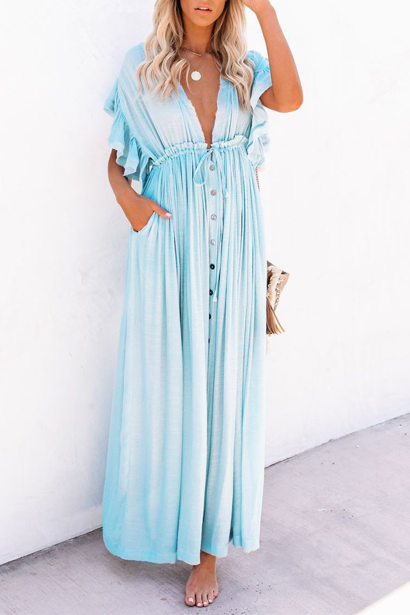 Casual Solid Patchwork V Neck Cake Skirt Dresses(4 Colors)