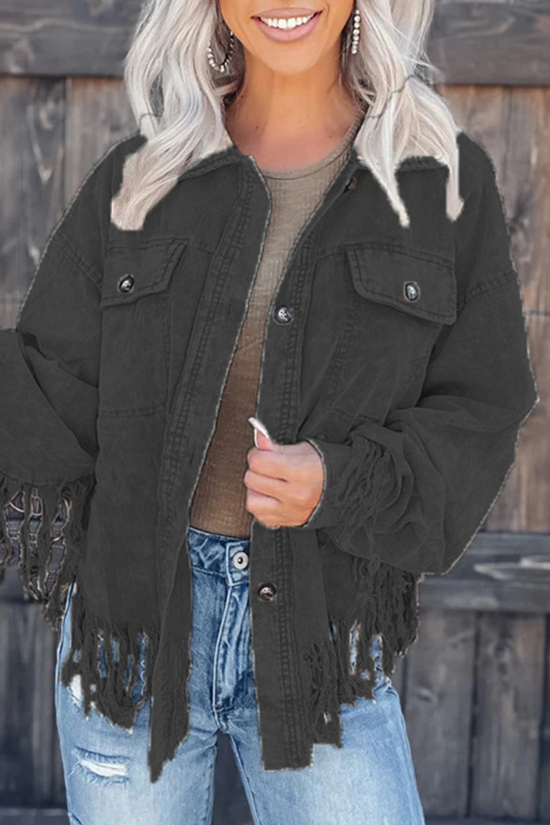 Casual Solid Tassel Asymmetrical Turndown Collar Outerwear