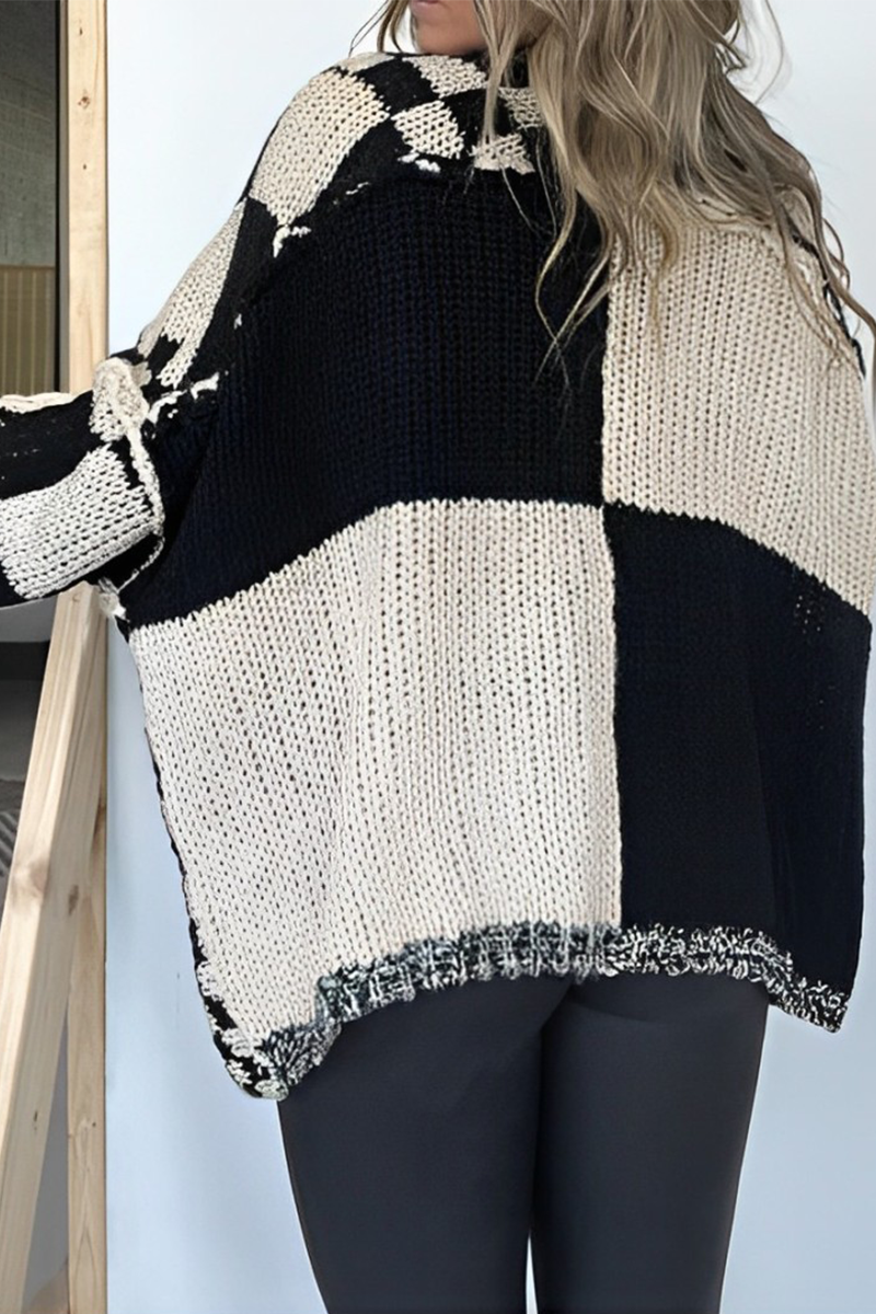Casual Street Plaid Weave Contrast V Neck Outerwear(3 Colors)